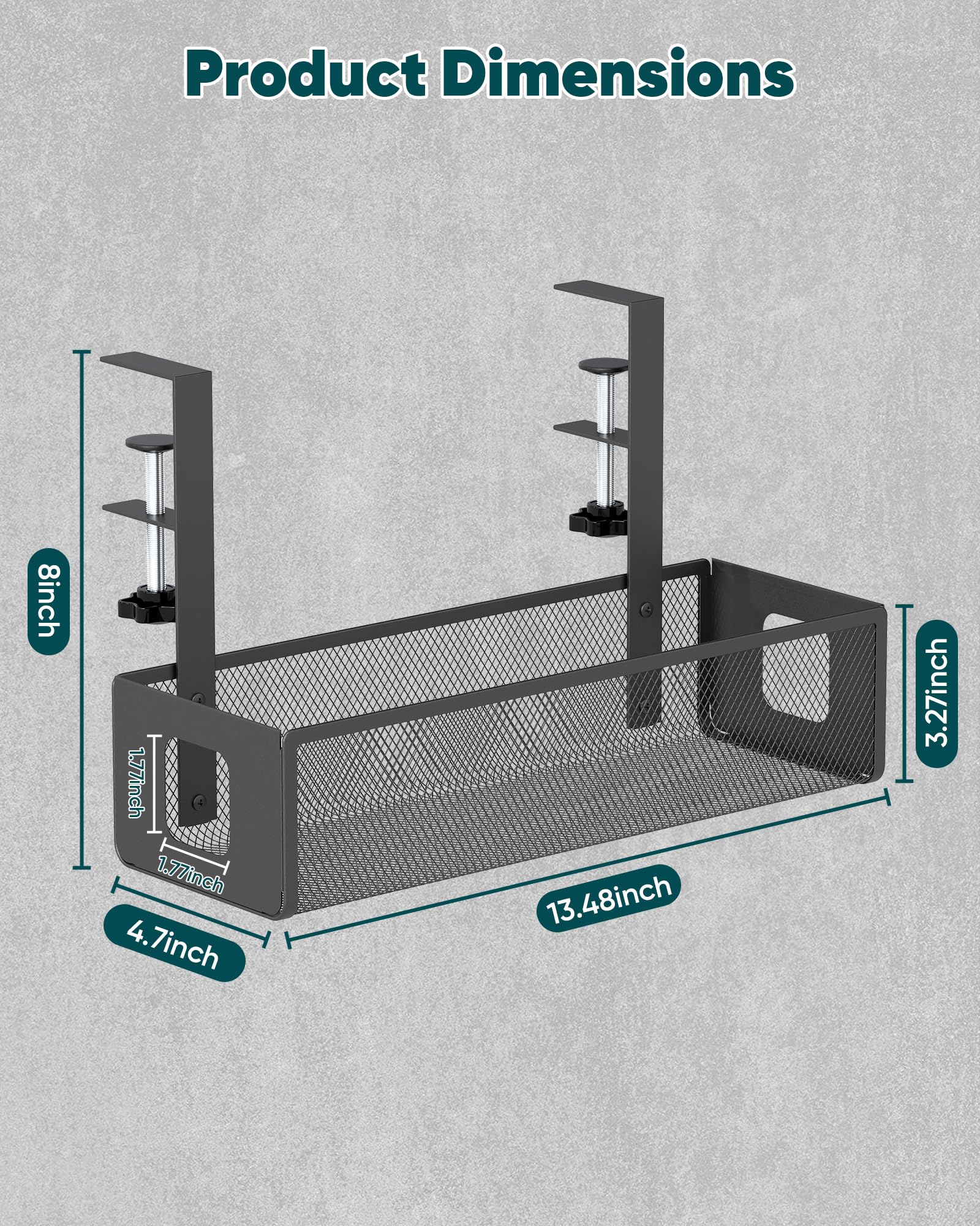 - 【Compact Yet Spacious – Optimized Dimensions】 The cable tray under desk measured 13.48 x 4.7 x 3.27 inches, this under desk wire management fits most standard-sized power strips and cables. A simple way to declutter your workspace and increase efficiency.