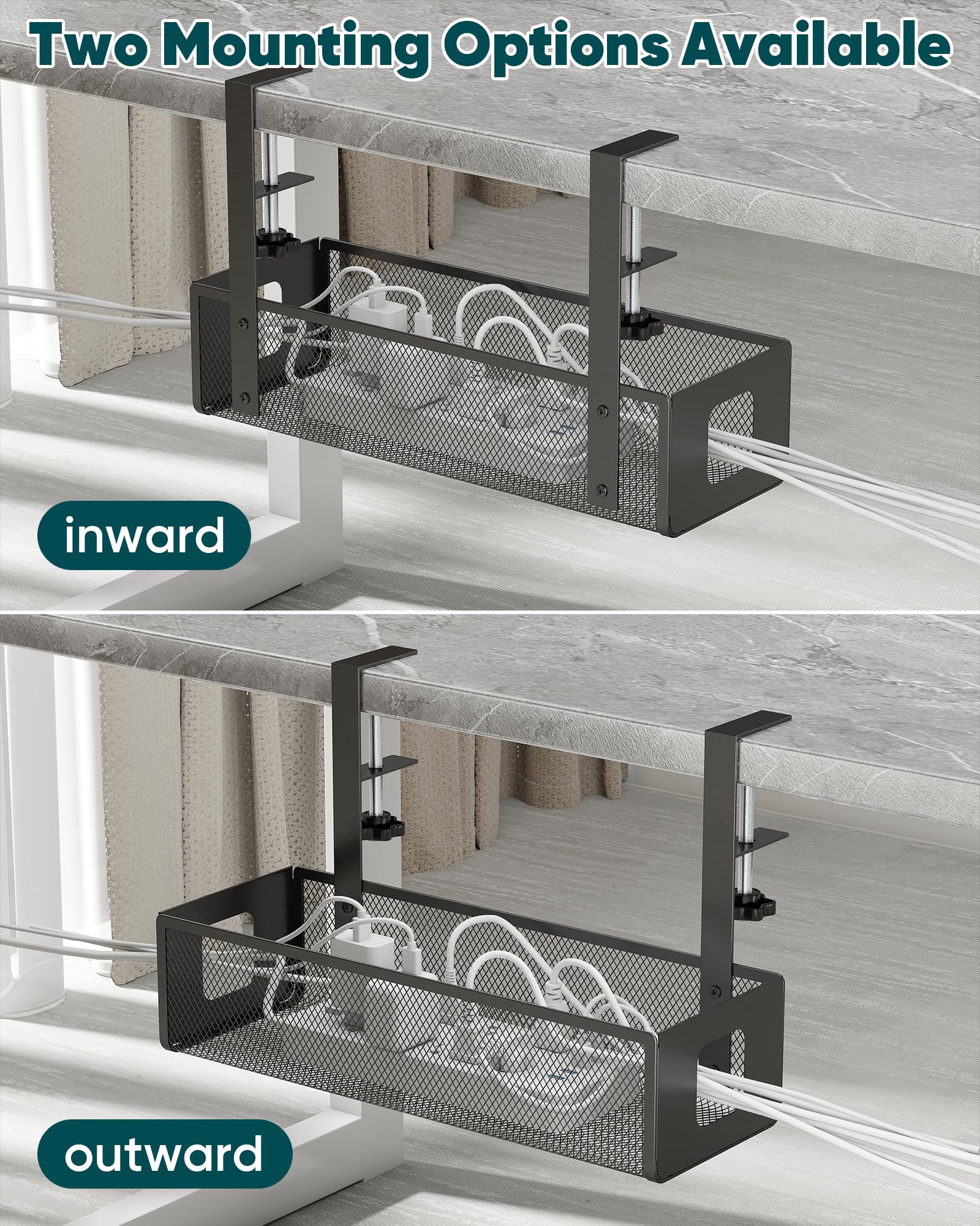 - 【Dual-Direction C-Clamp – Flexible Installation】 The cord management under desk is Equipped with an innovative F-style clamp that supports both inward and outward mounting options. Easily adapts to different desk setups without taking up extra space.