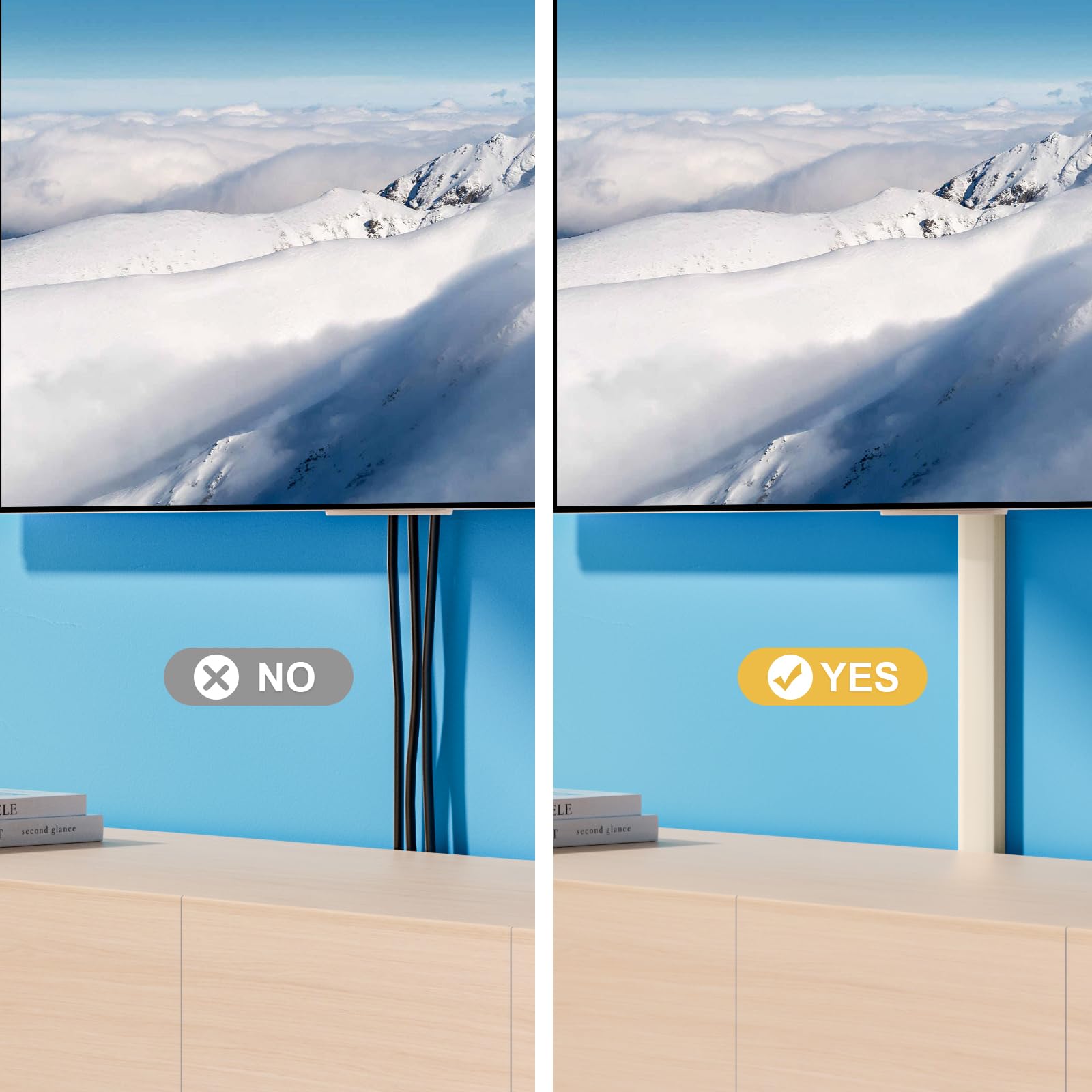 - BYE BYE MESSY TV WIRES! Hung your TV up but the HDMI and Internet cords are dangling down. The clutter of wires is really hard to look at. The wires are directly exposed and inadvertent touch can be easily tangled with the cords, a potential electrical hazard. Don't want something bulky and not in a position to put the wires behind the wall, so the Yecaye TV cord hider is a good option