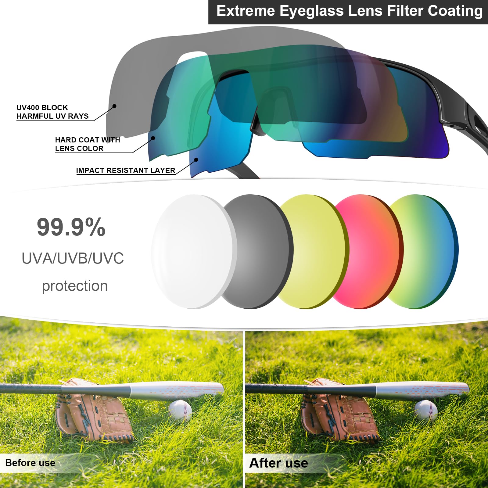 - Advanced Safety Features: With impact-resistant and scratch-resistant lenses, these safety glasses offer reliable protection against flying debris and pollutants. The anti-fog technology and UV coatings ensure clear vision and shield your eyes from harmful UV rays, providing all-around safety for your eyes during every activity.