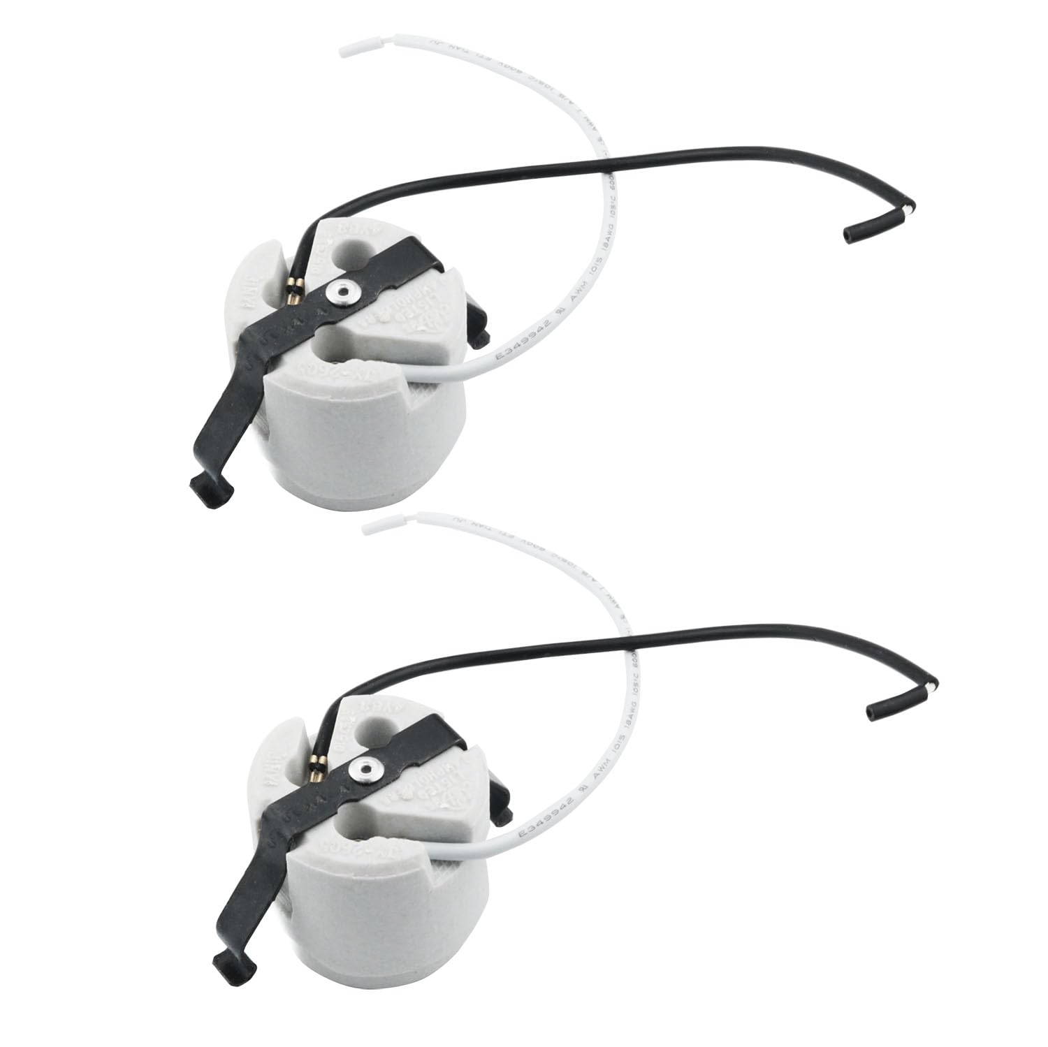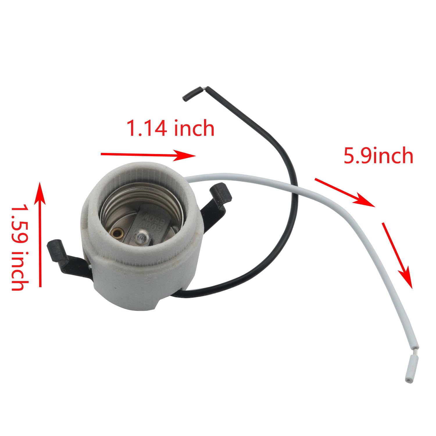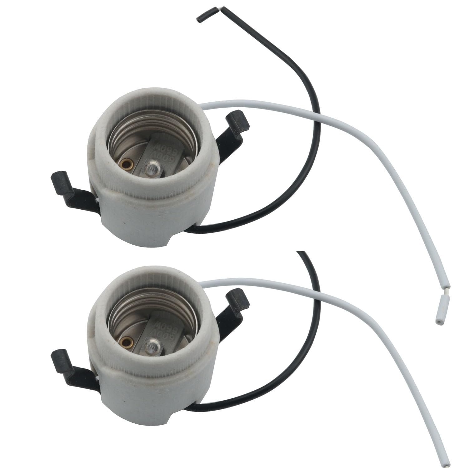 YHXiXi 2pcs U-Clip Snap-in Medium Base Keyless Socket Porcelain Snap-in Fixture Socket with 7.5inch Leads 660W 600V Ceramic Lampholder High Temperature Resistant