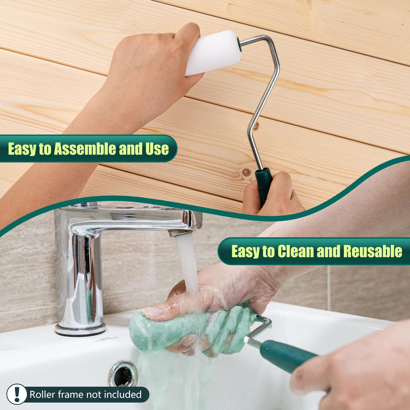 - The paint kit includes 20 4-inch round-head foam roller covers with large sponge pores that provide excellent paint absorption and release performance, reducing the number of refills, providing even coverage, and minimizing drips and mess during application, thereby accelerating project completion