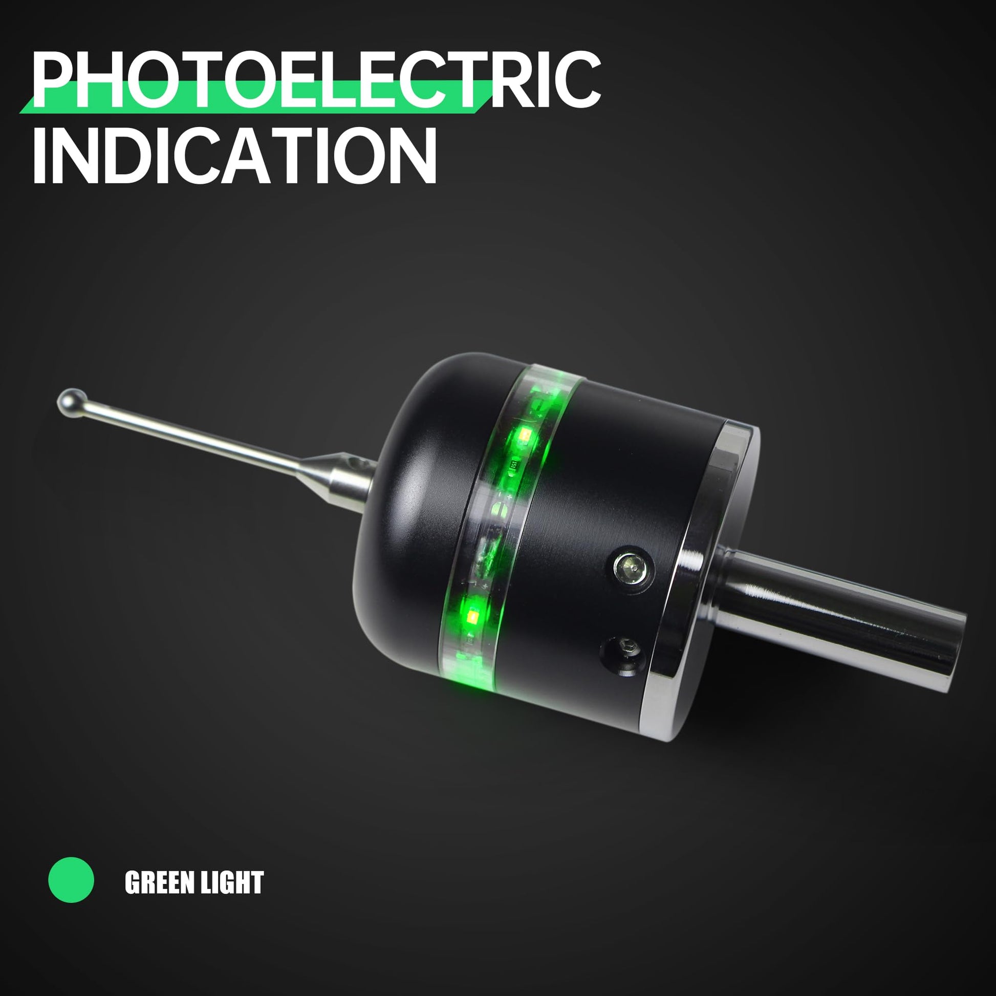 - 【Working principle】Working principle: if the ball head and handle are short circuited, the light will turn on.So the probe can only test metals, does not support the detection of insulation materials and insulating spindle; NOTE:The CNC probe consumes a lot of power,If the light is not on, please check power supply