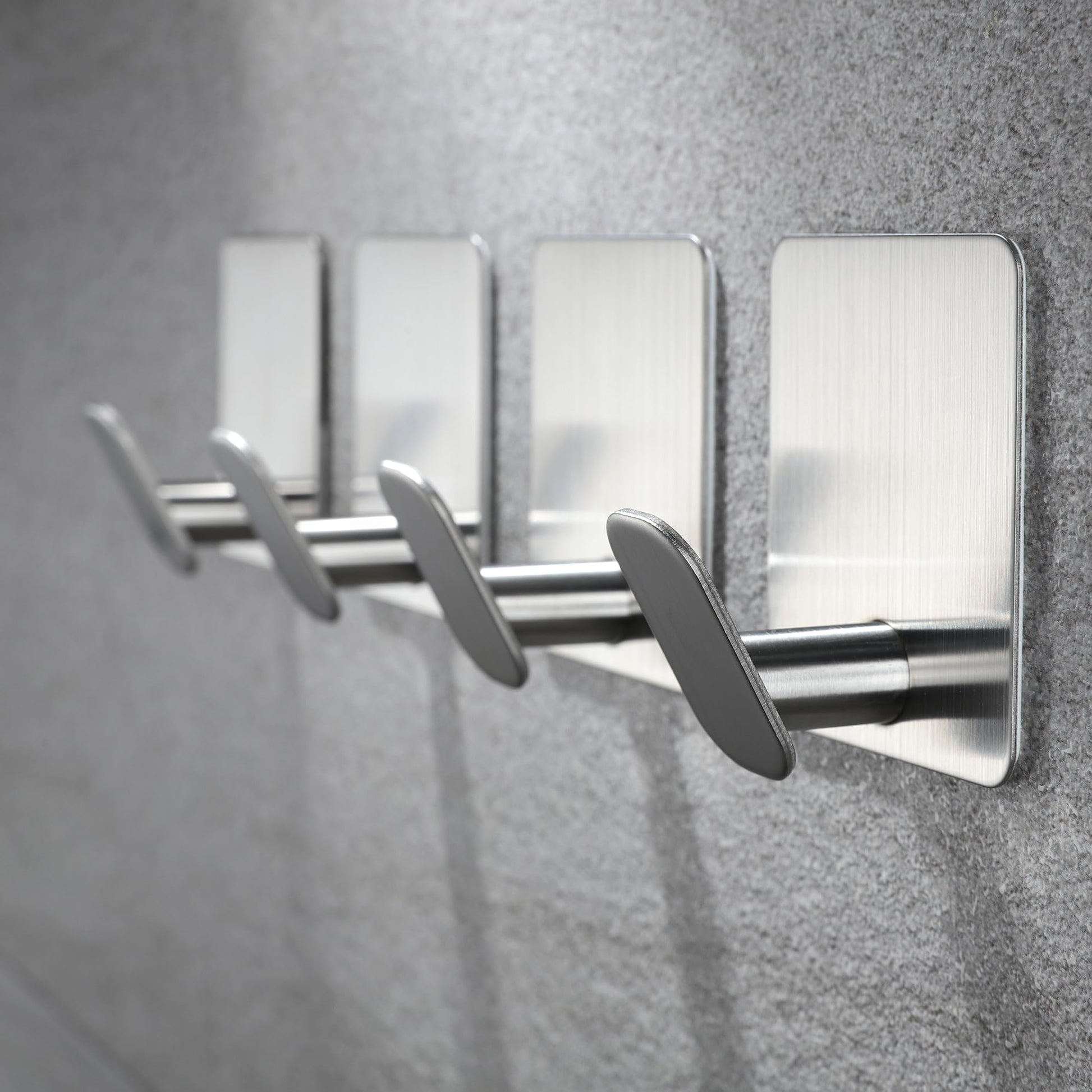 Details: YIGII Silver Walls Hooks, Self Adhesive Hooks for Hanging Coat Clothes Closet Robe Heavy Duty, Towel Holder Stick on Bathroom Kitchen, 4 Pack