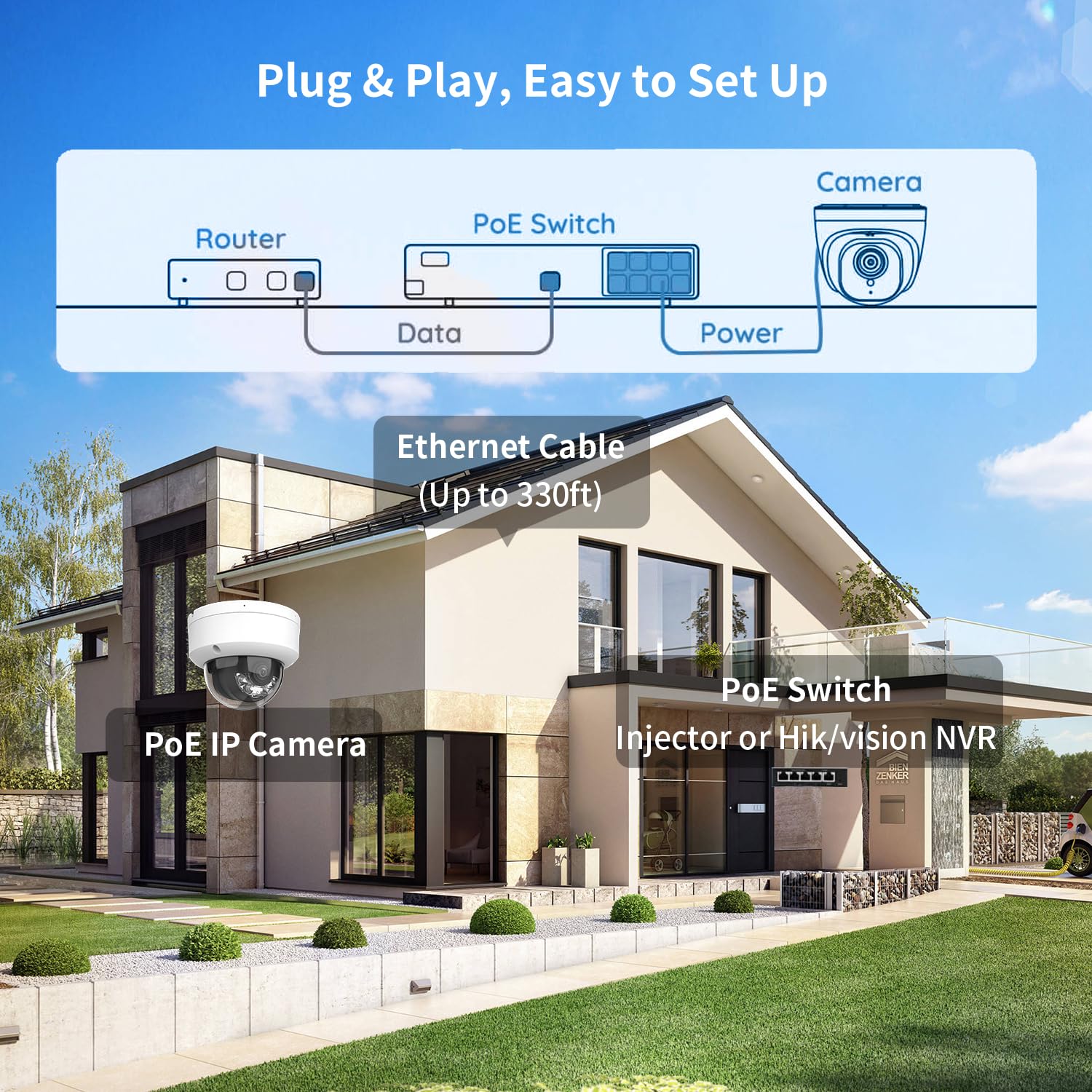 - Easy PoE Setup: Powered by IEEE 802.3af PoE for seamless installation. Works with iVMS-4200 and Hik-Connect apps for remote access—control your camera anytime, anywhere;
