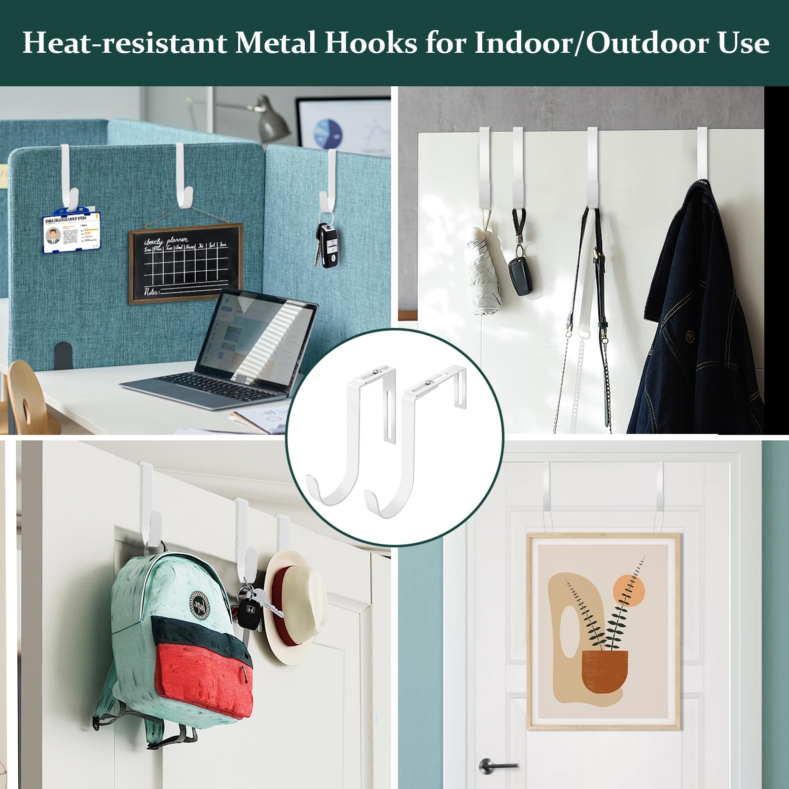 Yinsiskyer Adjustable Over The Door Hooks, Premium Metal Hooks for Hanging, Heavy Duty Door Coat Hangers and Towel Door Hangers, Cubicle Hook fits 1 3/8" to 3 1/2" Longer Panels for Wreath,White,5 Pcs