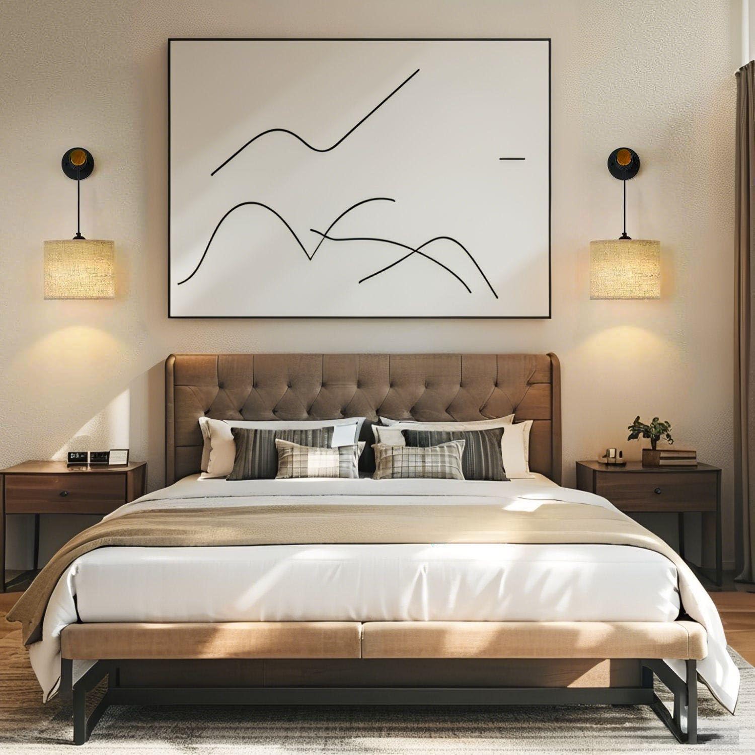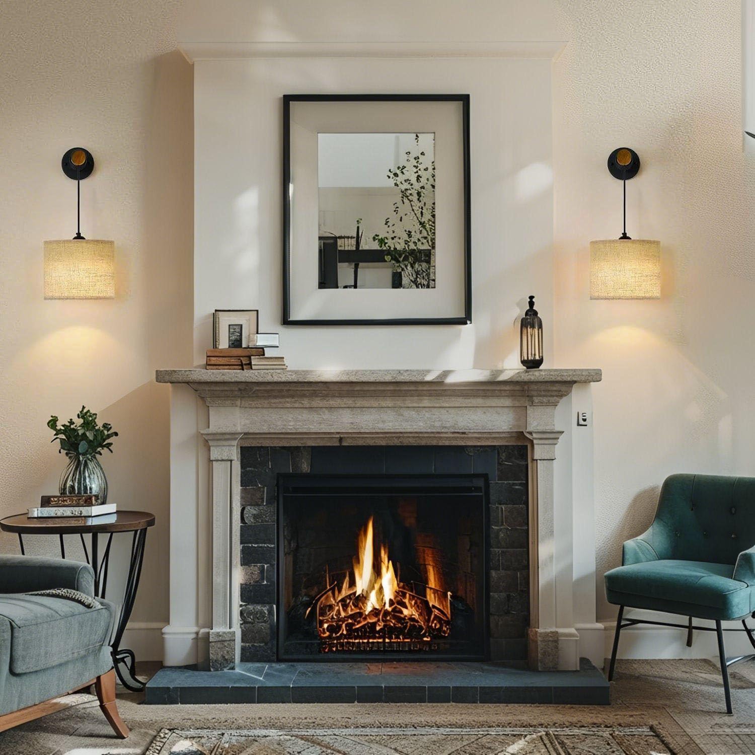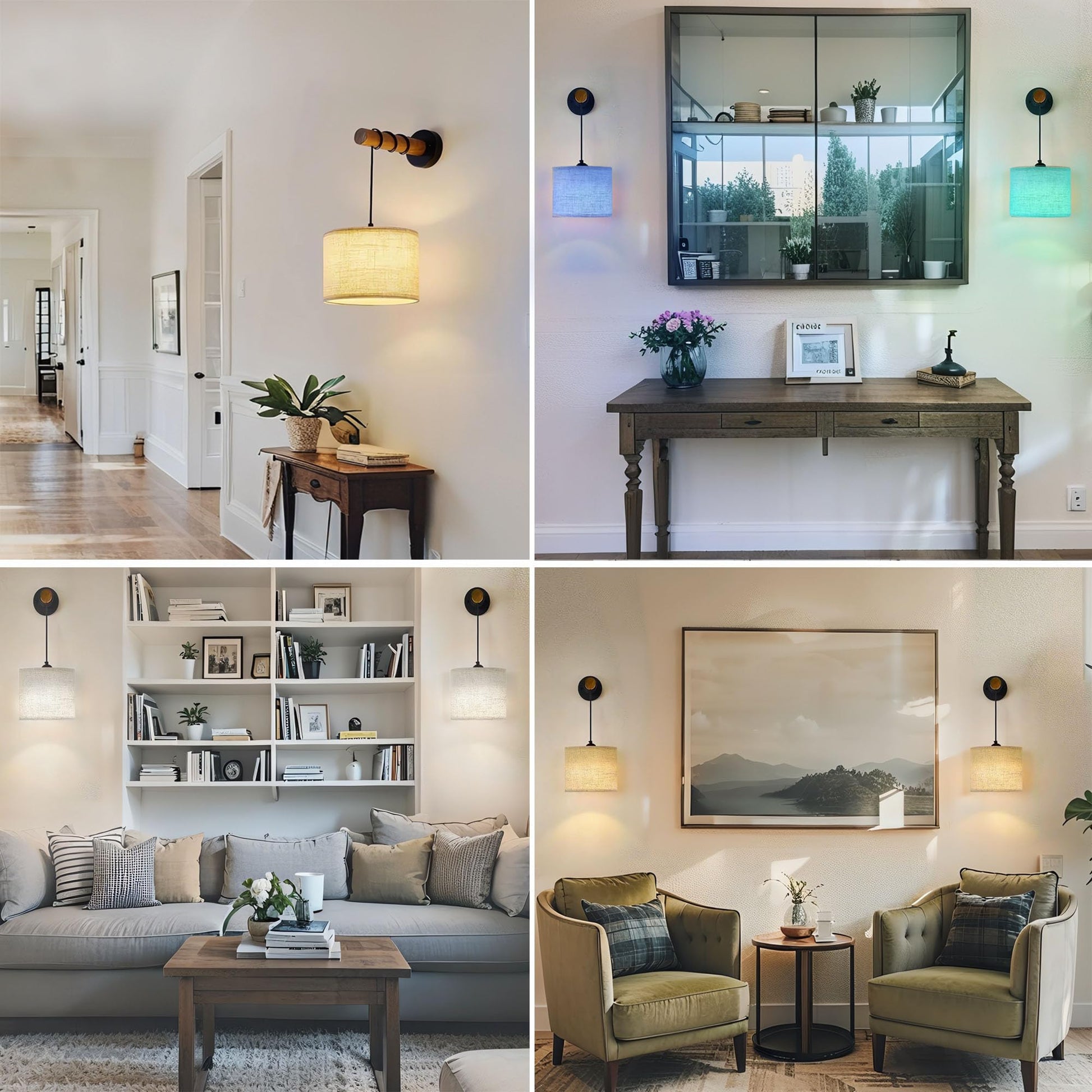 - Perfect fit for your home: The lampshades measure 9.44"x 7.87", and the wooden handles are 8.66"long. With a 0-11.81" adjustable hanging height, these sconces wall decor set of 2 adapt to your different lighting needs. Effortlessly install them beside sofas, beds or around frames. Ideal for living room, bedrooms, hallways, and fireplace areas, they enhance any space with charm.