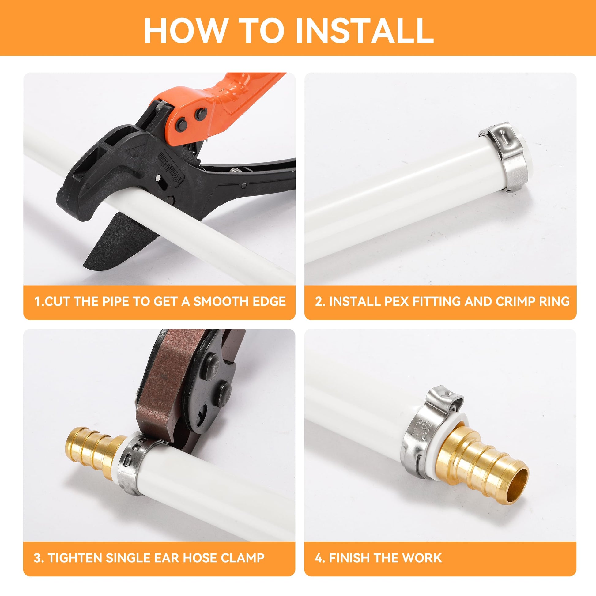 - Tight Seal & Secure Fit – The narrow band and single-ear design provide concentrated sealing pressure for a tight, secure, and leak-proof connection on all standard PEX fittings.