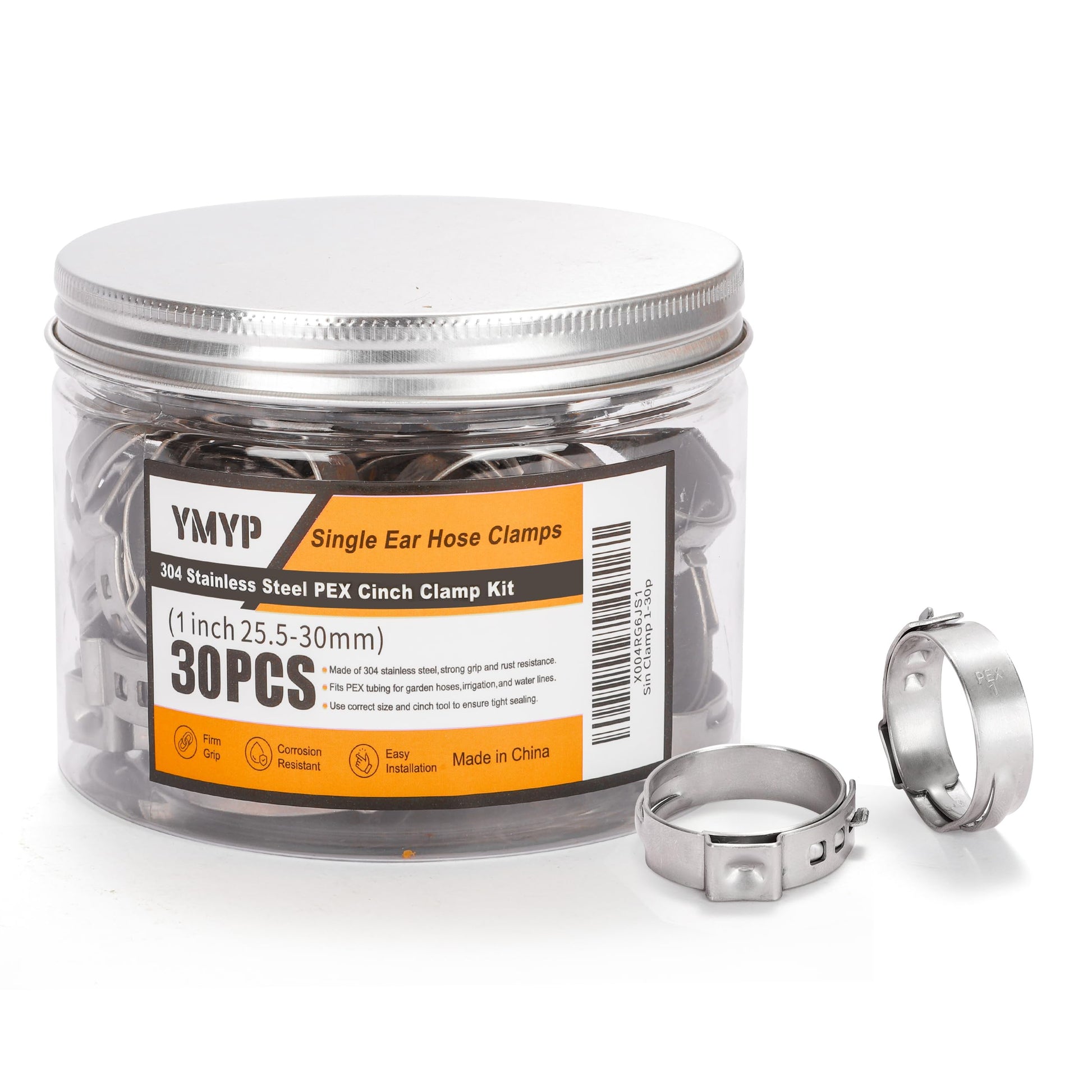 YMYP 30PCS 1 Inch PEX Cinch Clamps, 304 Stainless Steel Single Ear Hose Clamps for PEX Tubing & Pipe Fittings, Leak-Proof and Rust-Resistant