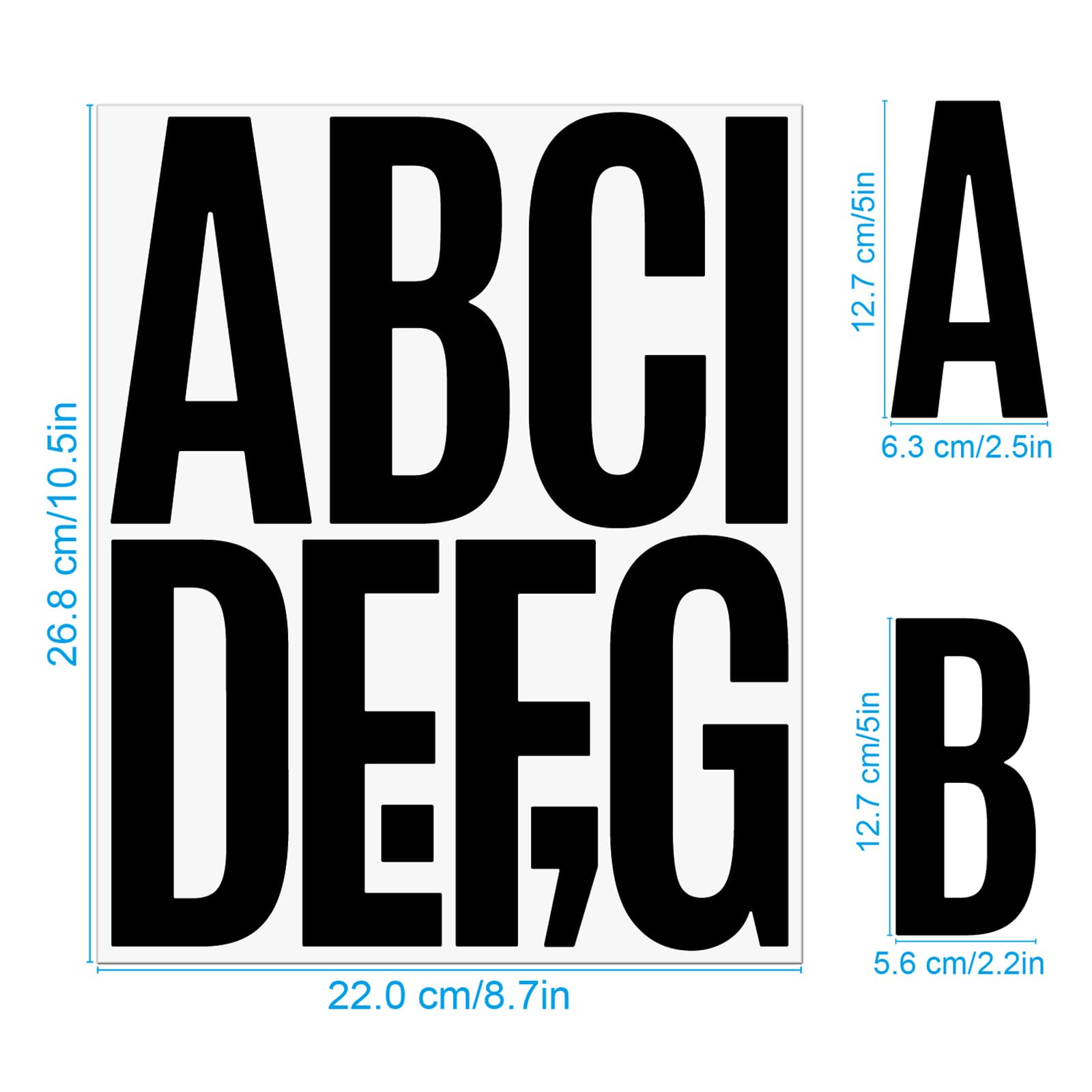 - Multi-Purpose Application Kit: Each kit contains 30 sheets with a total of 305 waterproof 5-inch vinyl stickers, including 130 uppercase letters, 55 numbers, and 120 symbols. Most characters include 5 pieces each. This versatile kit is perfect for personalizing mailboxes, doors, windows, signs, and vehicles. Suitable for both residential and commercial environments, it fulfills both your decorative and identification needs.