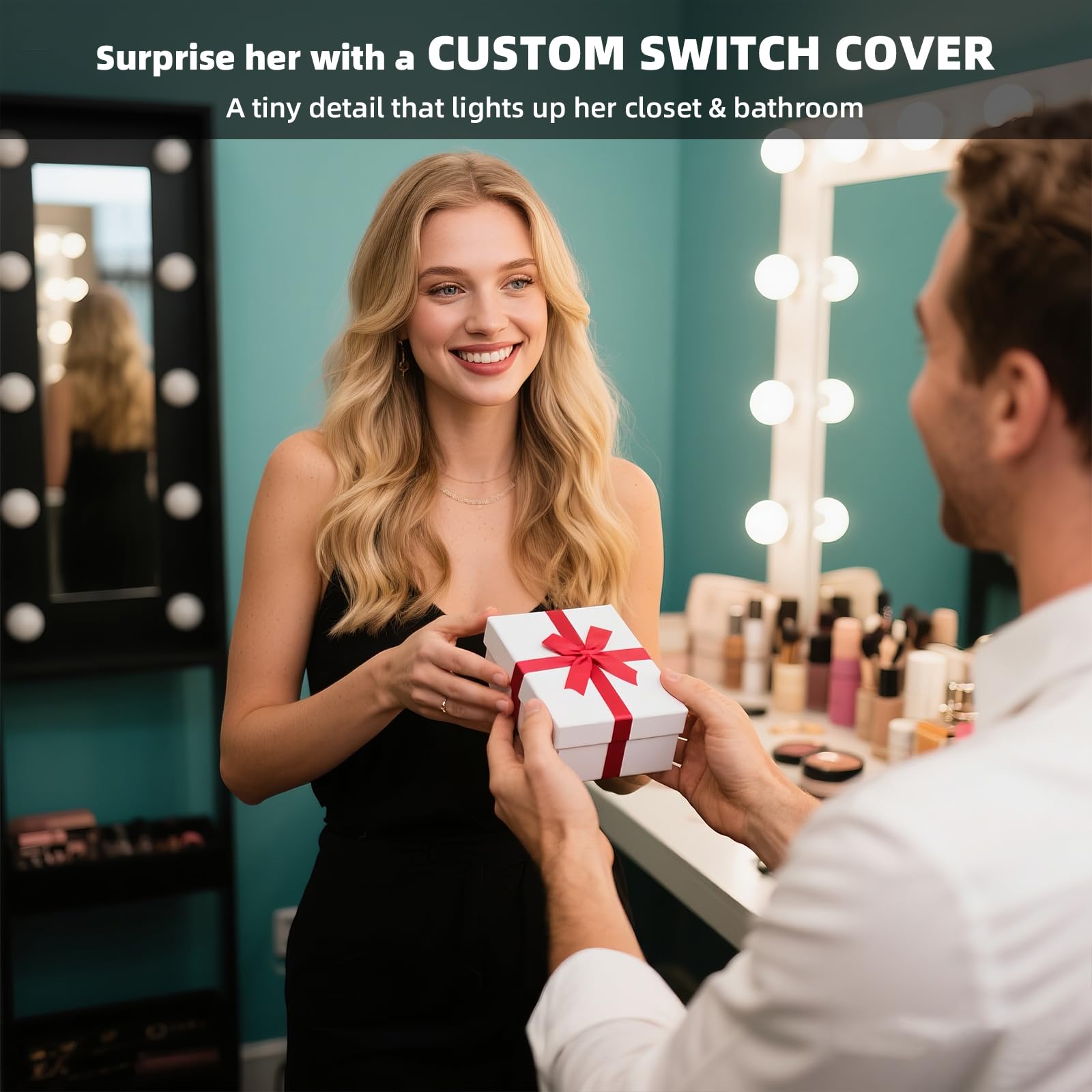 - Surprise her with a custom purple light switch cover plate— a tiny detail that lights up her closet,or "just because" to add a smile to her day.A perfect gift for moving or renovating.
