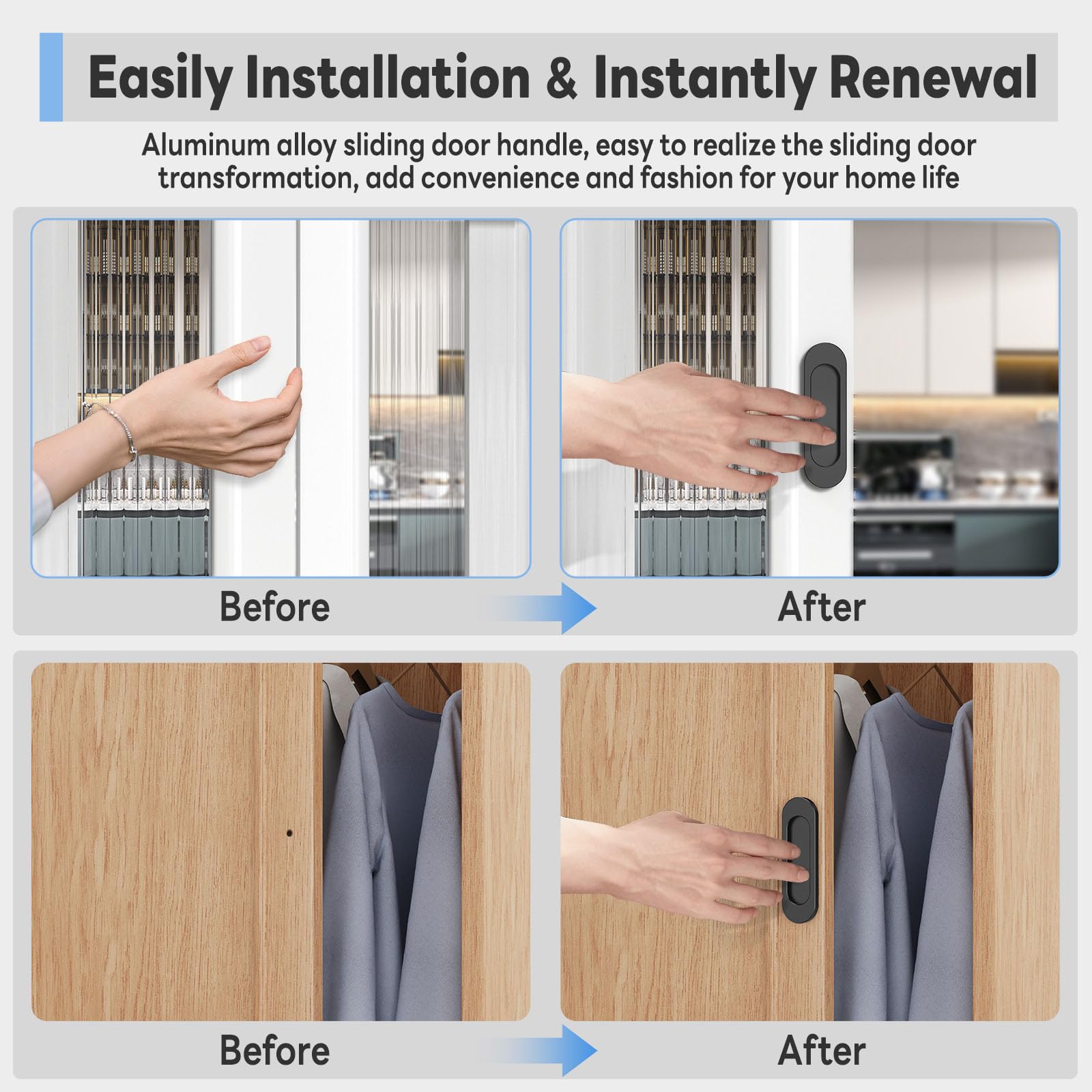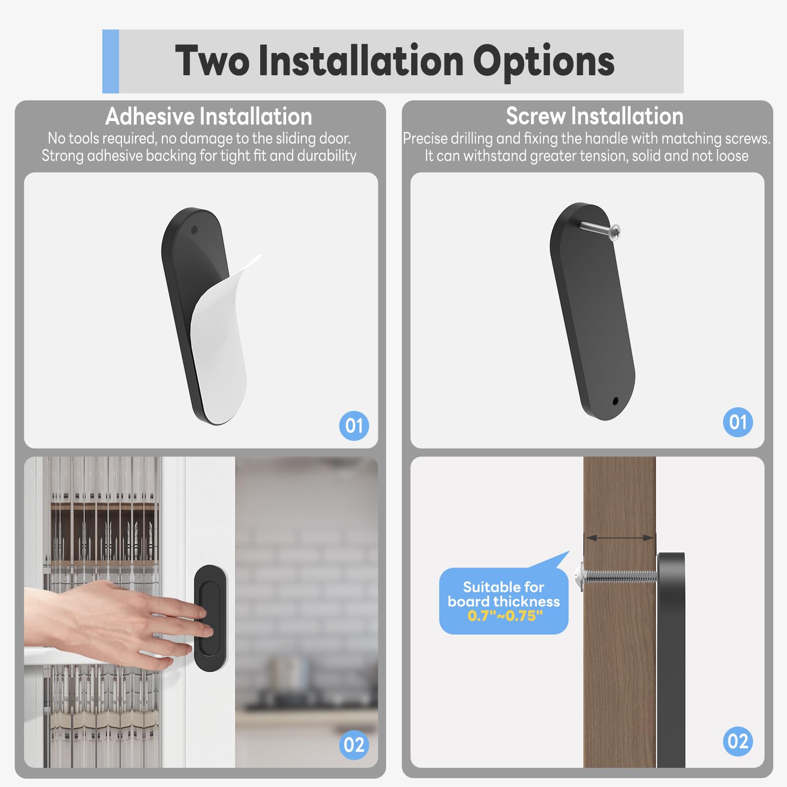 - Wide Application: The stick-on handles are suitable for installation on different styles of sliding doors, such as glass door, barn door, closet door, cabinet door, bathroom door, patio door, etc.