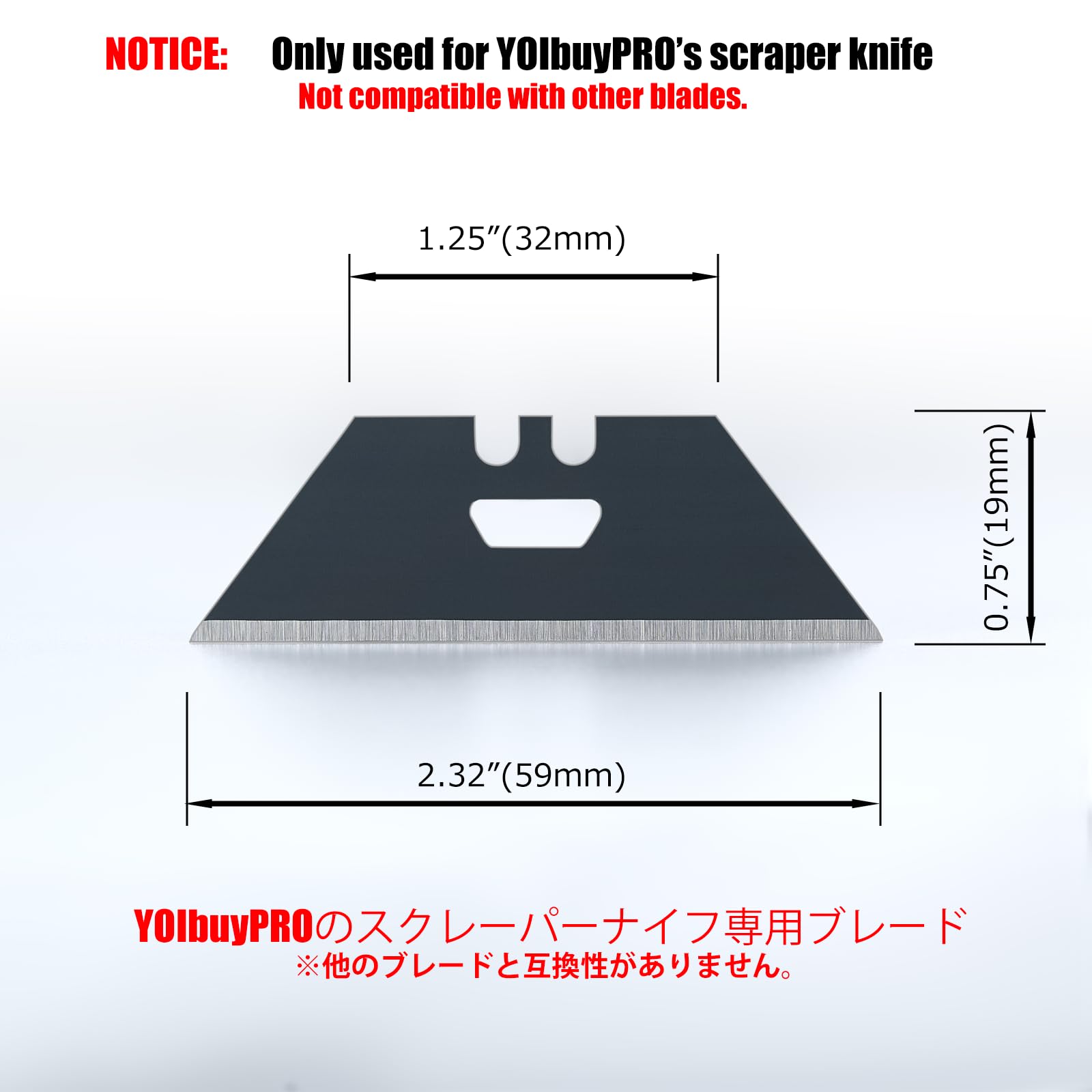 Details: Set of 50 replacement blades for YOIbuy PRO scraper cutter (YUK-01). Replacement blade type: YUK-01-50 storage case included. Made of SK2 tool steel with excellent abrasion resistance and special black rust resistant treatment, making the blade more durable. No hassle heat treatment and polishing process for maximum sharpness. Use this set to replace your scraper cutter blade.