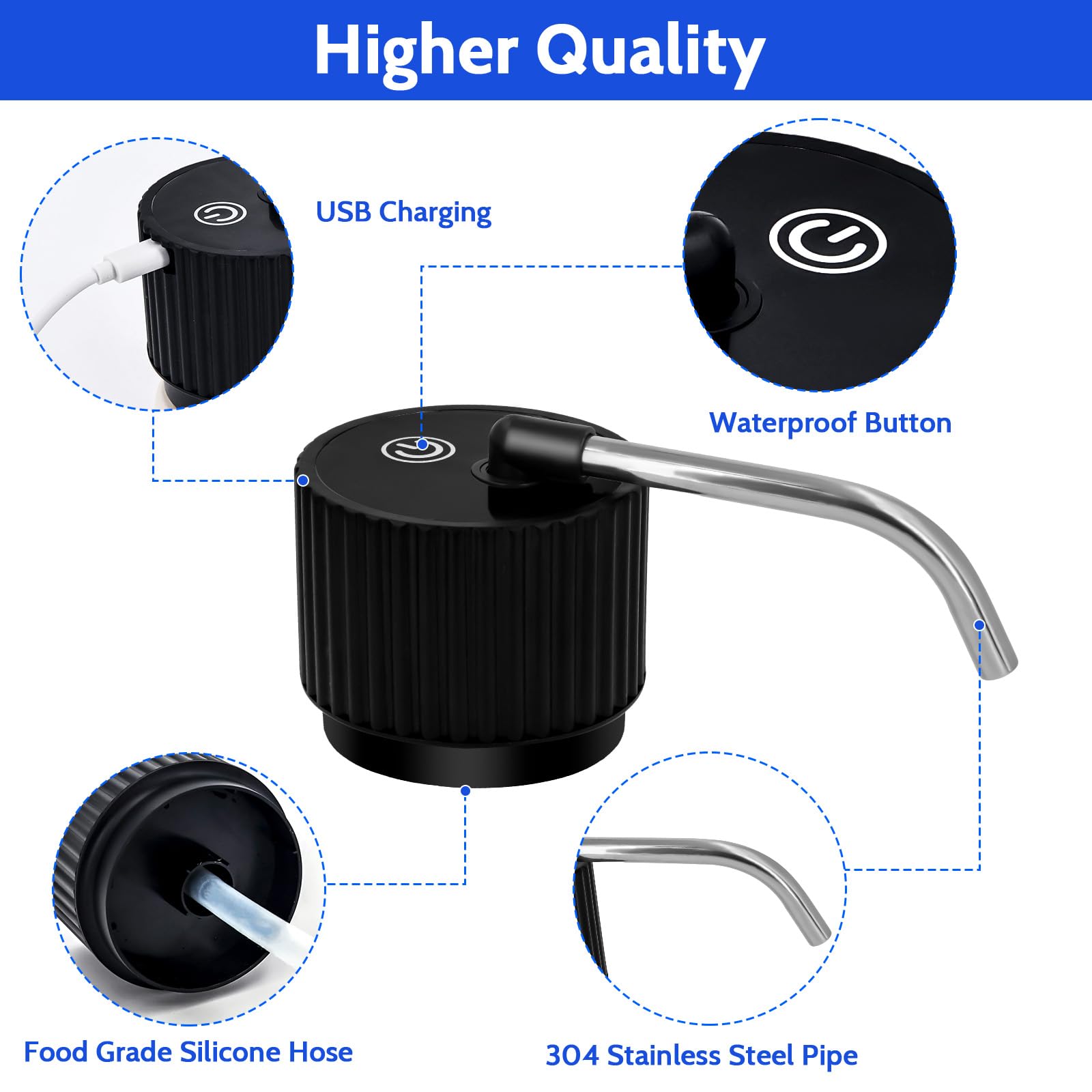 - Safeguarding the health of drinking water:The 5 gallon bottle water pump is made of an insulated high-density ABS plastic shell, 304 stainless steel, and the food-grade silicone hose can be used with confidence