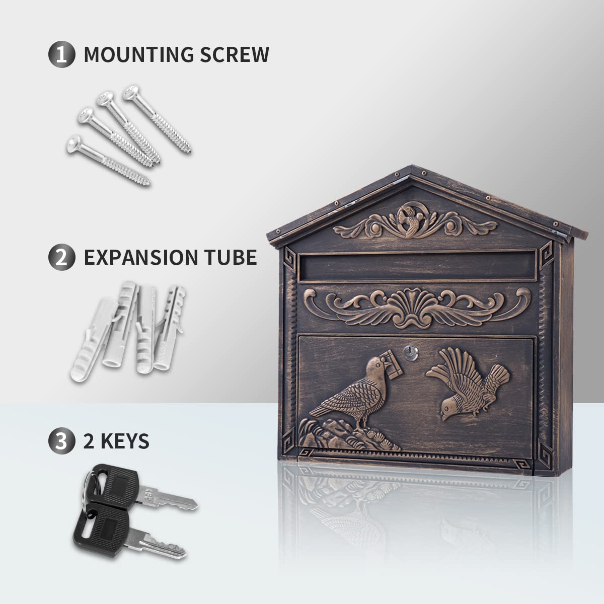 - RETRO LOOK: With an elegant and retro design, the mail box is perfect for decorating the exterior of your house.