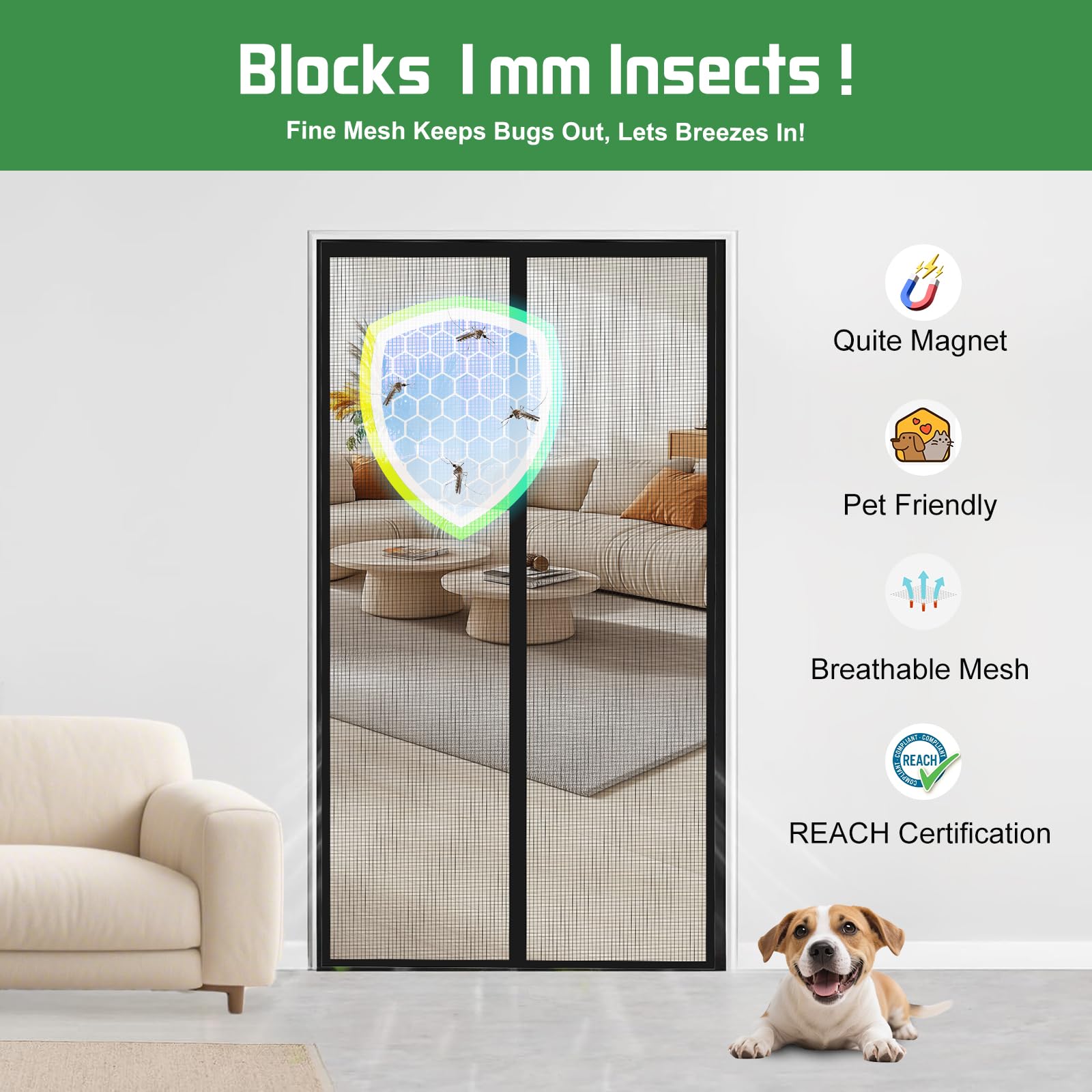 - Millimeter Protection Netting - The mesh door screen with magnets has been tested to block >98% of mosquitoes (including microscopic midges), and the mesh screen door's high-transparency mesh increases ventilation by 40%, so that the door can be opened and closed in the summer and still maintain air circulation.