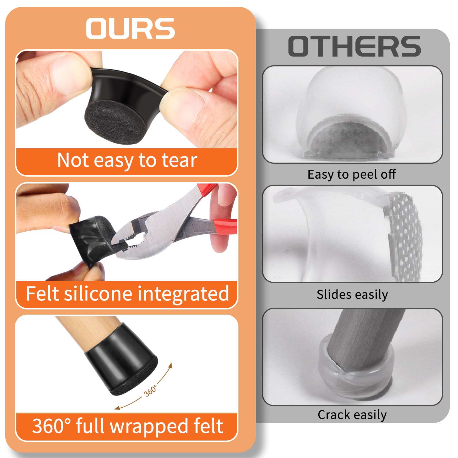 - Easy Installation: Our chair leg protectors easy to install.No damage to furniture legs,no need for pasting,noinstallation tools required.Used for many furniture legs such as living room,bedroom,kitchen,dining room,home office,entryway,patio,Outdoor