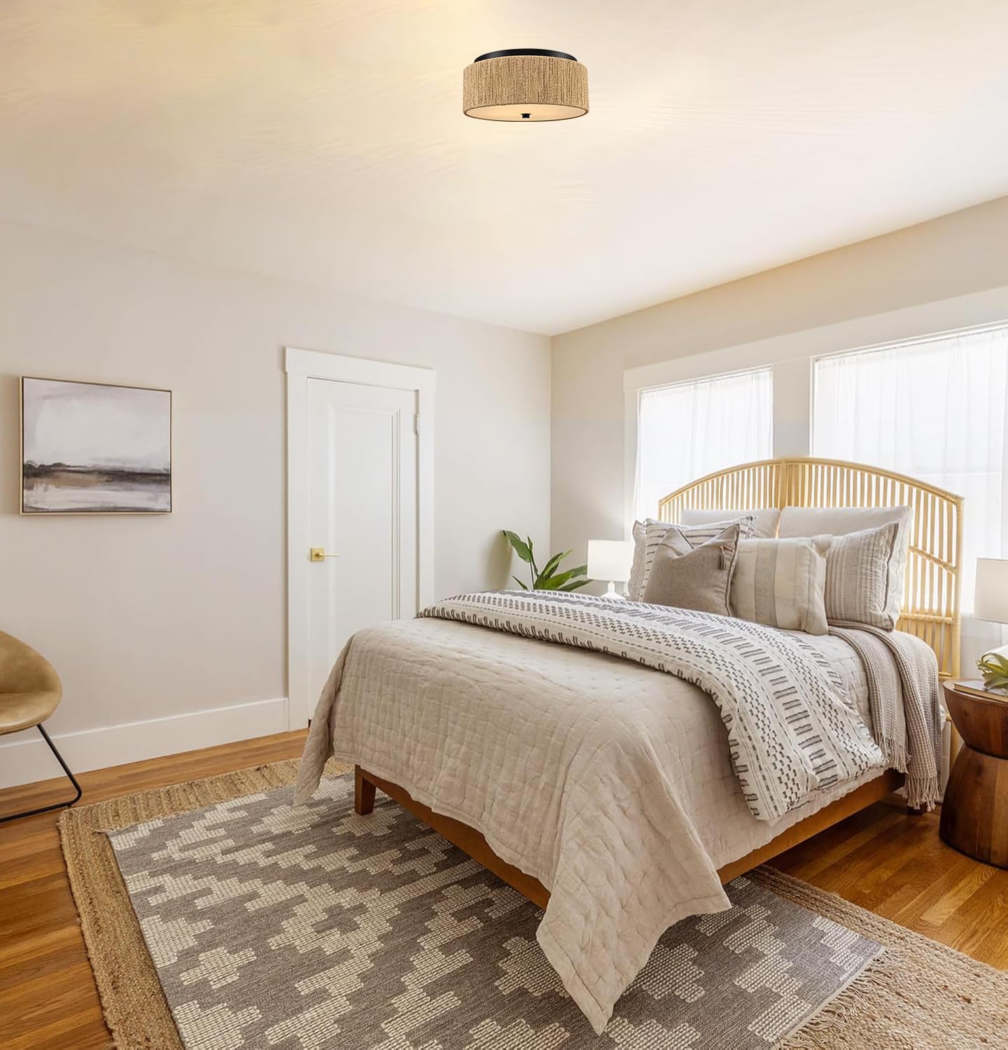 - 🍒3-Light Boho Ceiling Light: this woven boho ceiling light fixture is crafted from paper hemp rope drum shade to epitomize the natural feeling of a comfortable atmosphere