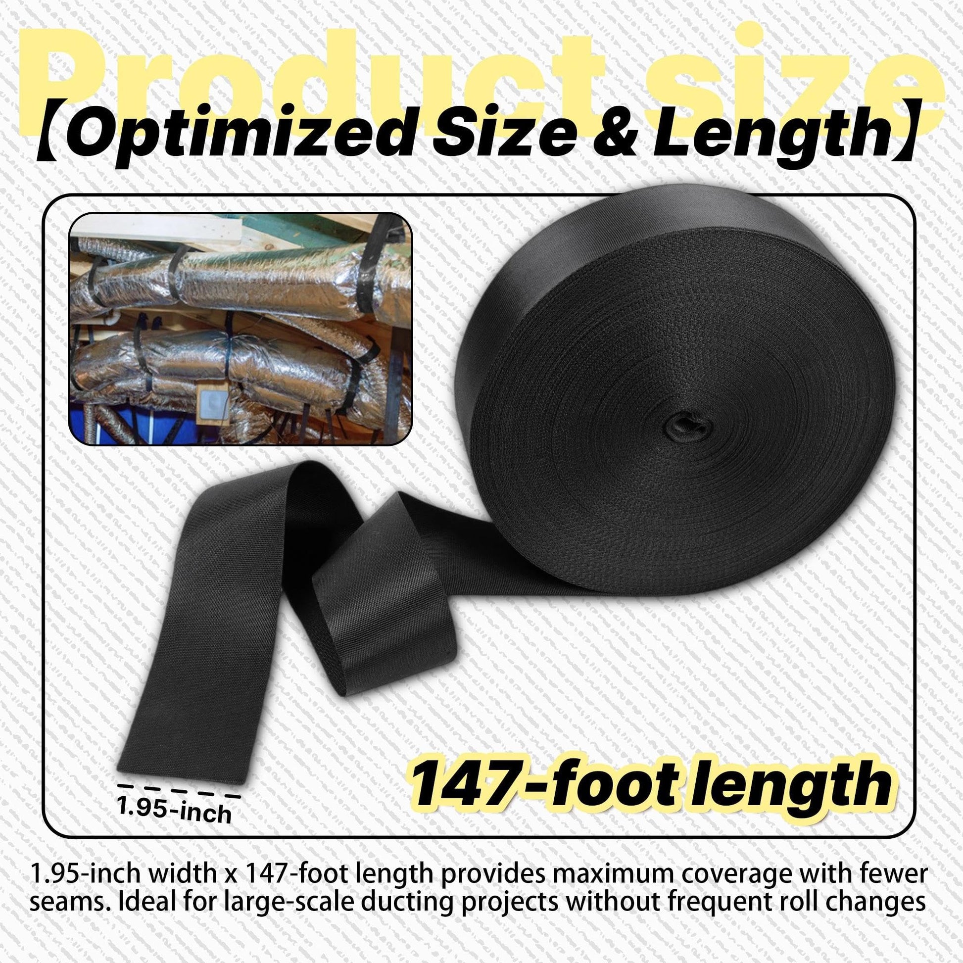 Yudylg Heavy Duty Duct Strap – 1.95 in x 147 ft Black Nylon Strapping for HVAC Duct, Durable Wrap Support Band for Building & Home Improvement