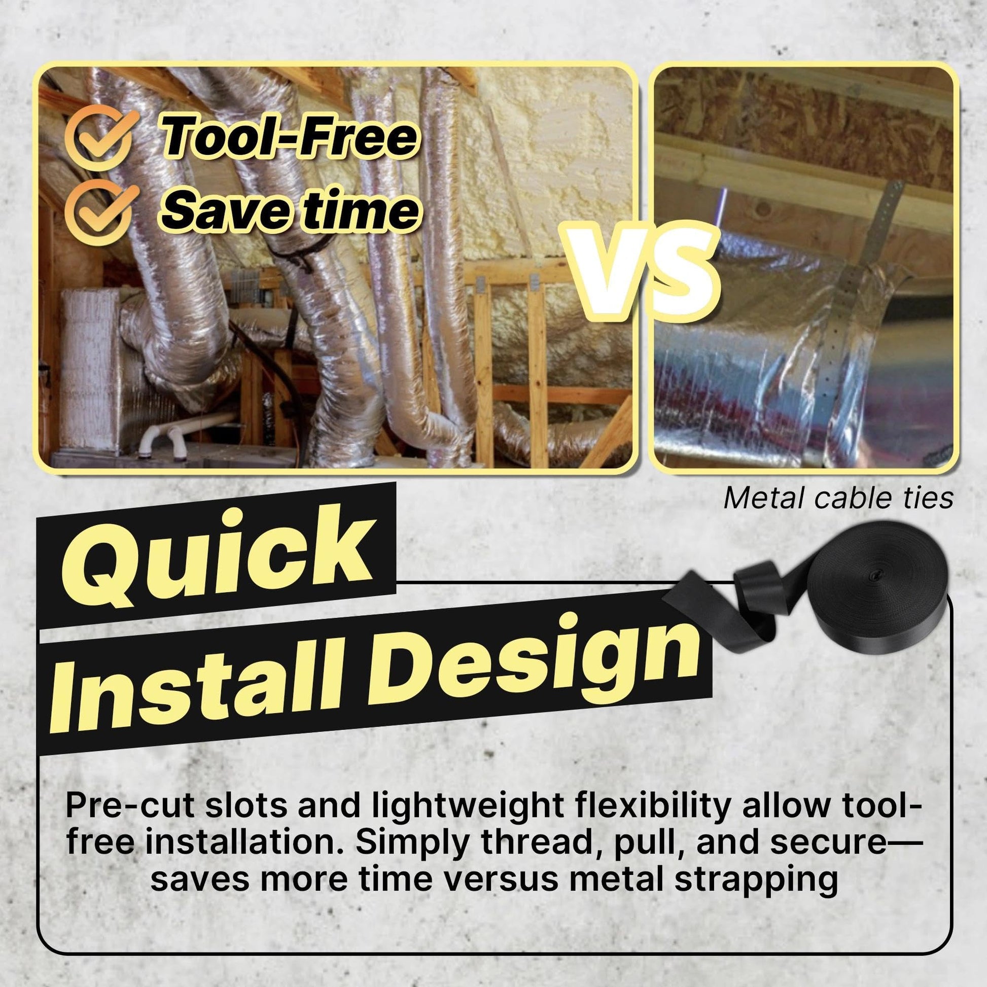 - Easy to Cut & Install – Flexible duct strap allows quick adjustments with standard tools for hassle-free setup,Suitable for various duct wrap and ventilation projects in building and home improvement