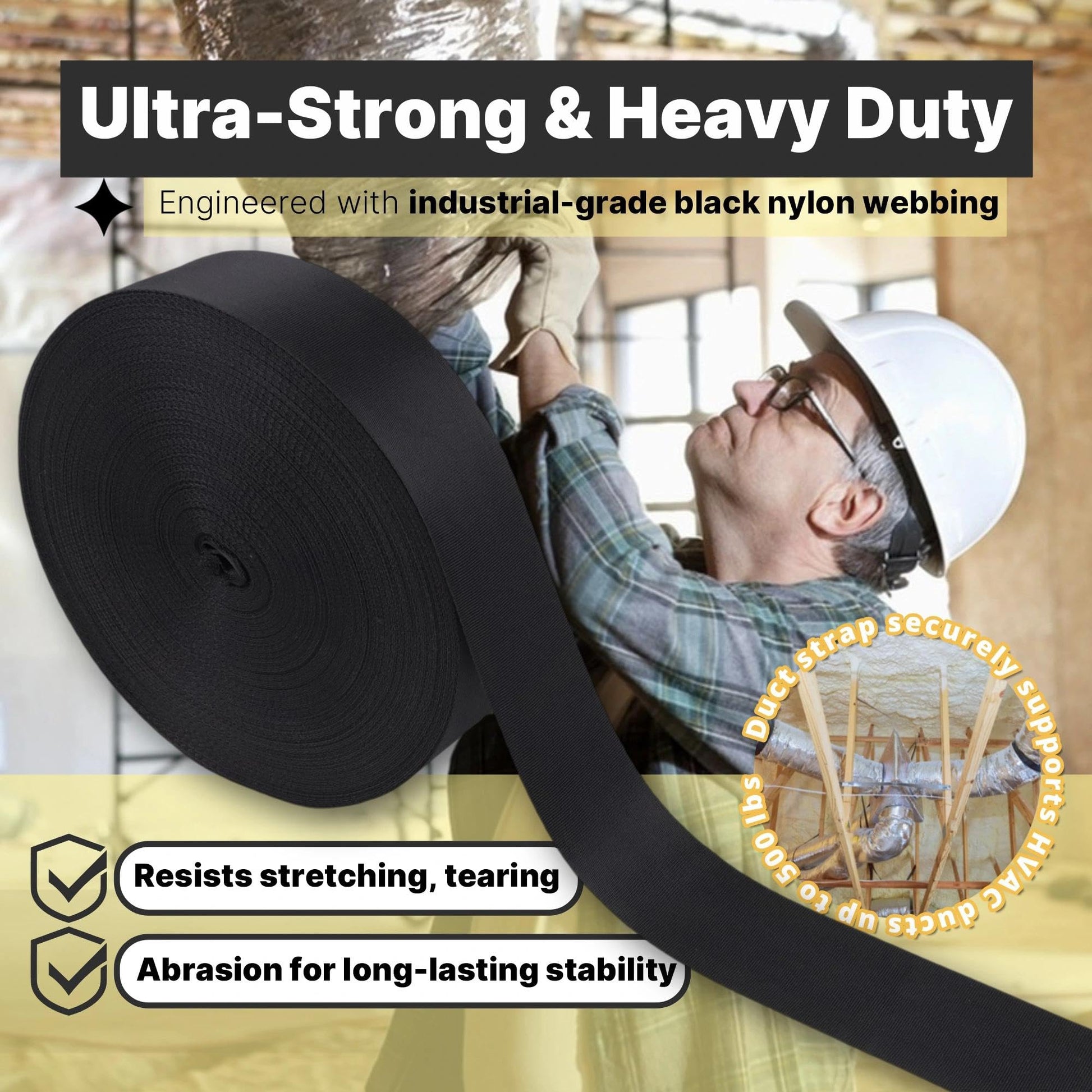 - Ultra-Strong & Heavy Duty – Engineered with industrial-grade black nylon webbing, our duct strap securely supports HVAC ducts up to 500 lbs. Resists stretching, tearing, and abrasion for long-lasting stability