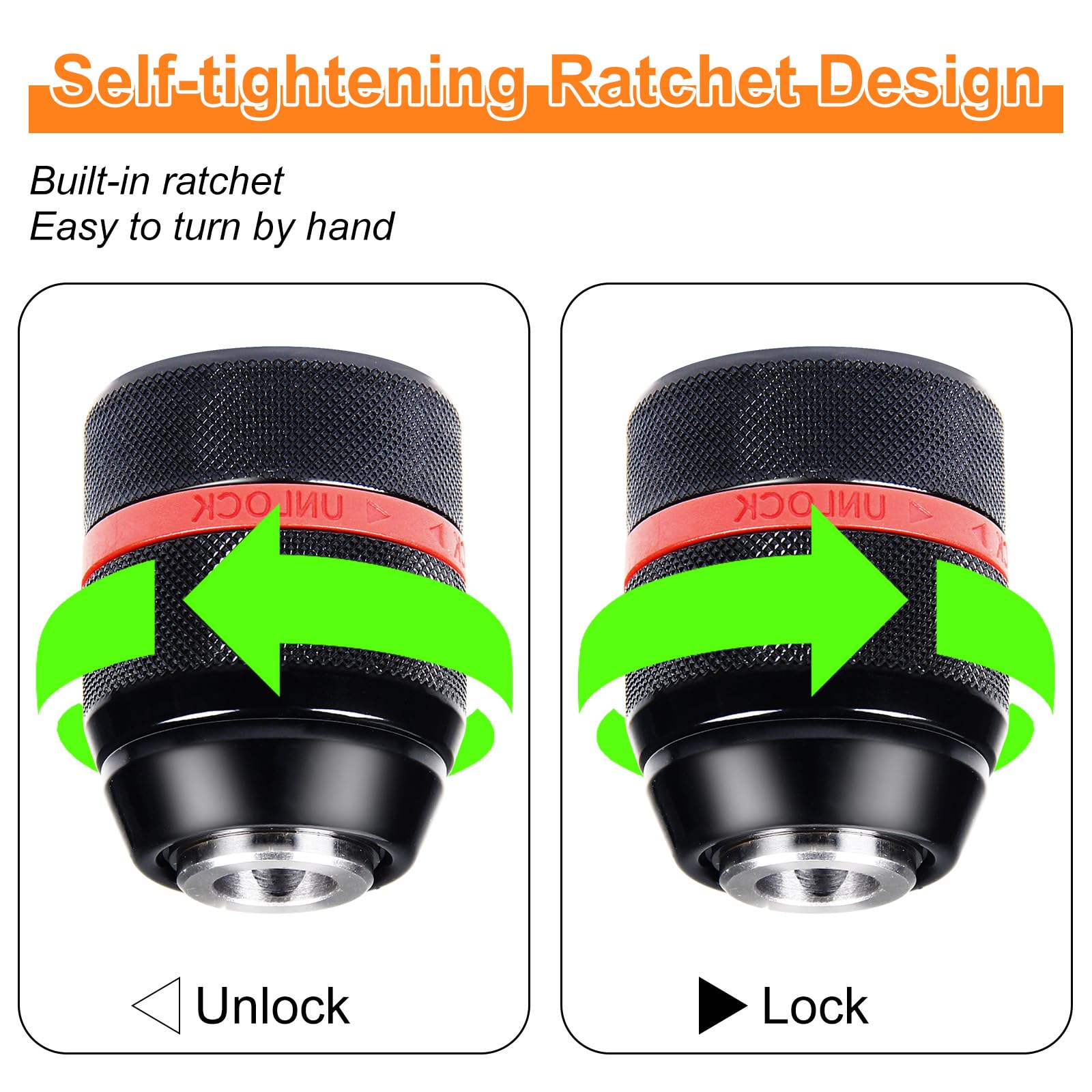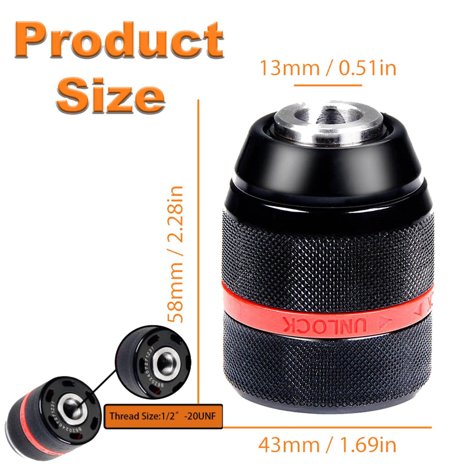 - 【Maximum Compatibility】Designed to fit most popular brands, including Milwaukee, Dewalt, Craftsman, Ridgid, and Makita, this power drill chuck delivers exceptional versatility. Before purchasing, please verify that your electric drill has a 1/2"-20UNF connection for seamless compatibility