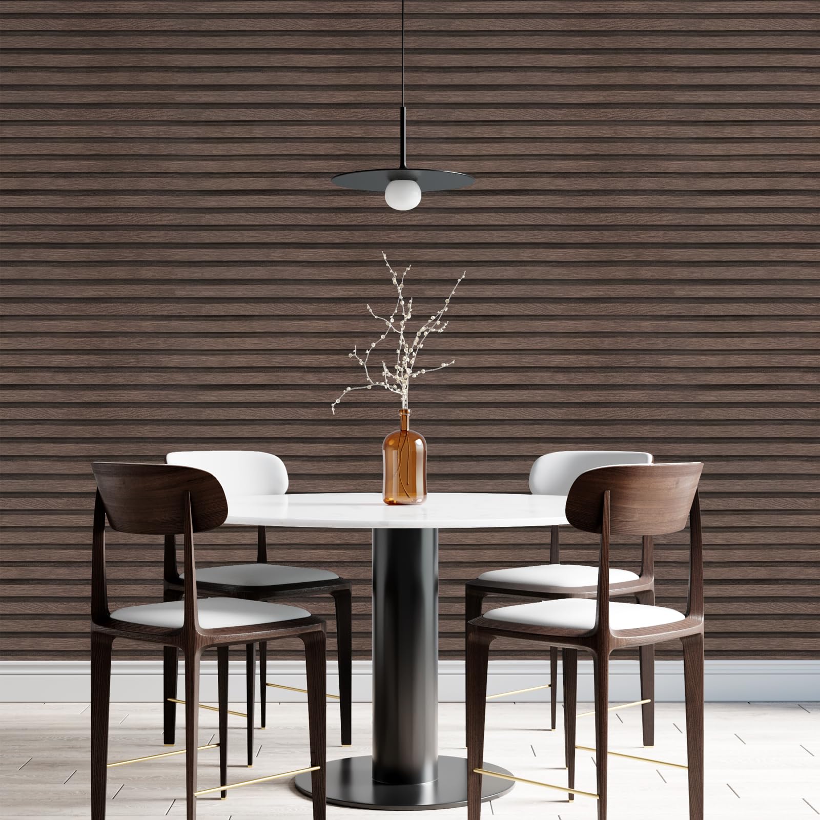 Yun-aeon Natural Wood Peel and Stick Wallpaper Wood Slats - 17.3"x 120" Dark Brown Self-Adhesive Waterproof Vinyl Removable Wall Paper for Wall Decor Bedroom