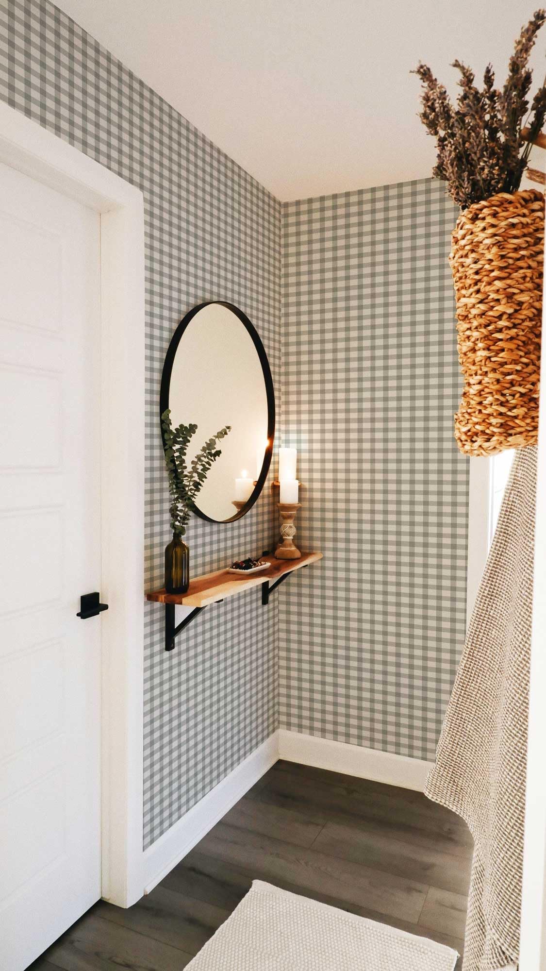 YXTII 17.3"×78.7" Plaid Wallpaper Stick and Peel, Striped Farmhouse Self Adhesive Contact Paper Wallpaper for Bathroom Bedroom Nursery Shelf Drawer Liner