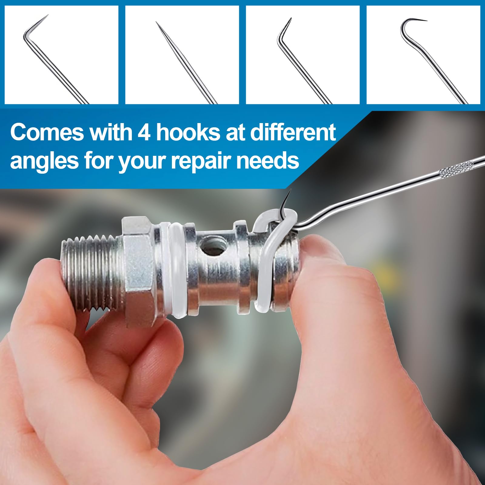 - 4 hooks and pick kit: hook tool kit includes 4 short hooks, including a straight head, a hook head, a 45 degree head and a 90 degree head tool