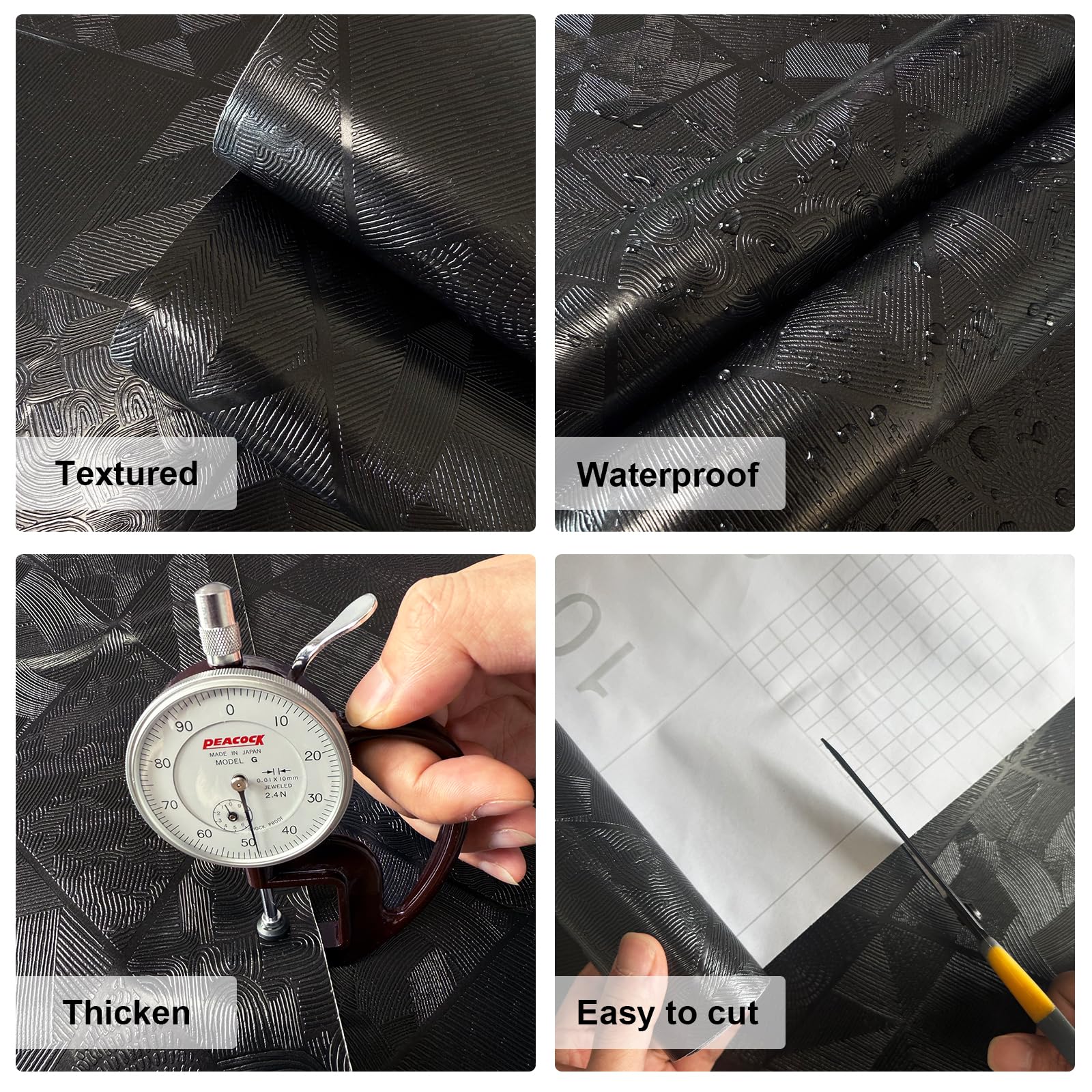- Unique Textured Wallpaper: This black textured wallpaper creates a touchable, three-dimensional texture through a micro-engraving process, with geometric and line patterns that give a gallery-quality texture as light and shadow flow. Black three-dimensional relief texture waterproof removable wallpaper, 3D concave and convex surface to enhance the sense of spatial hierarchy