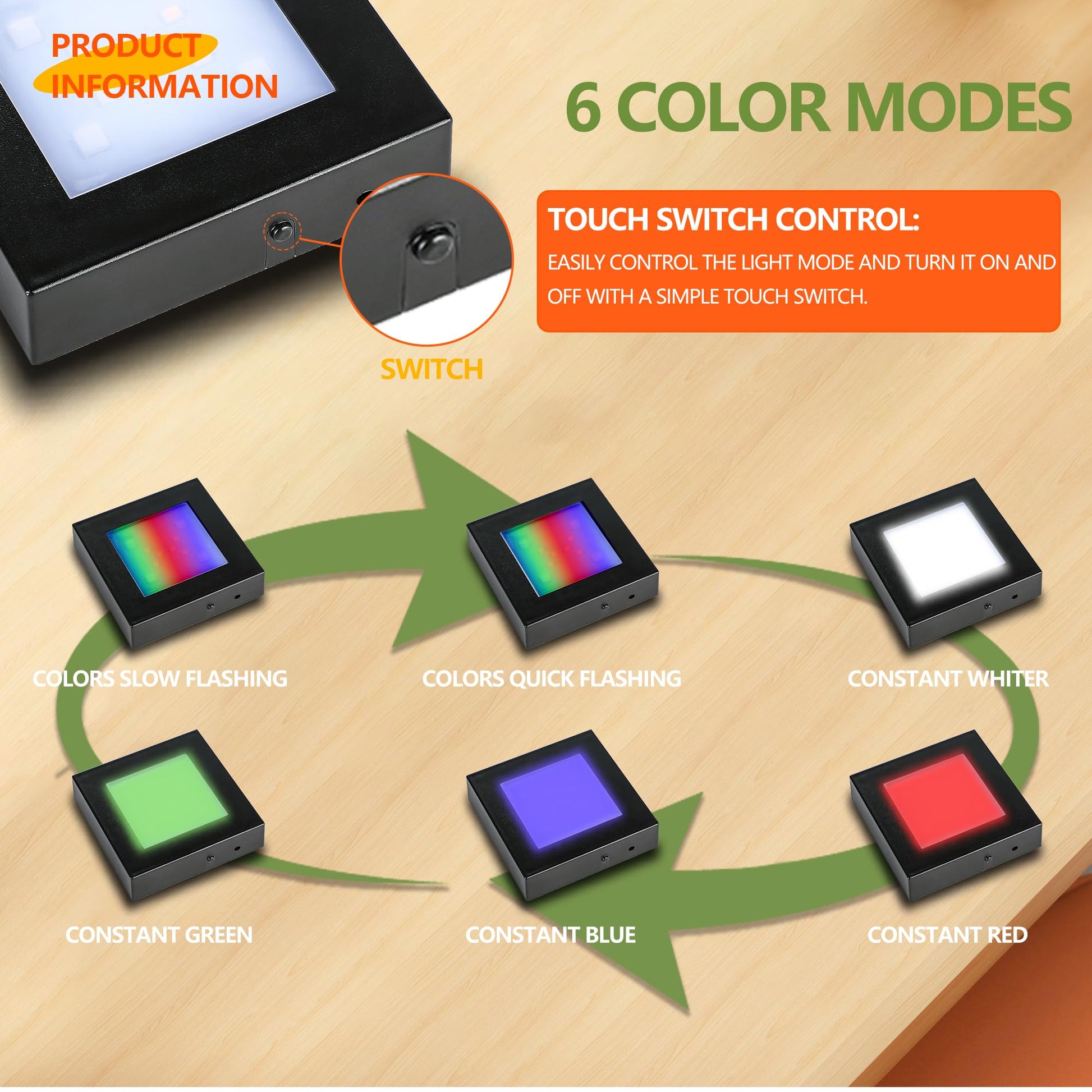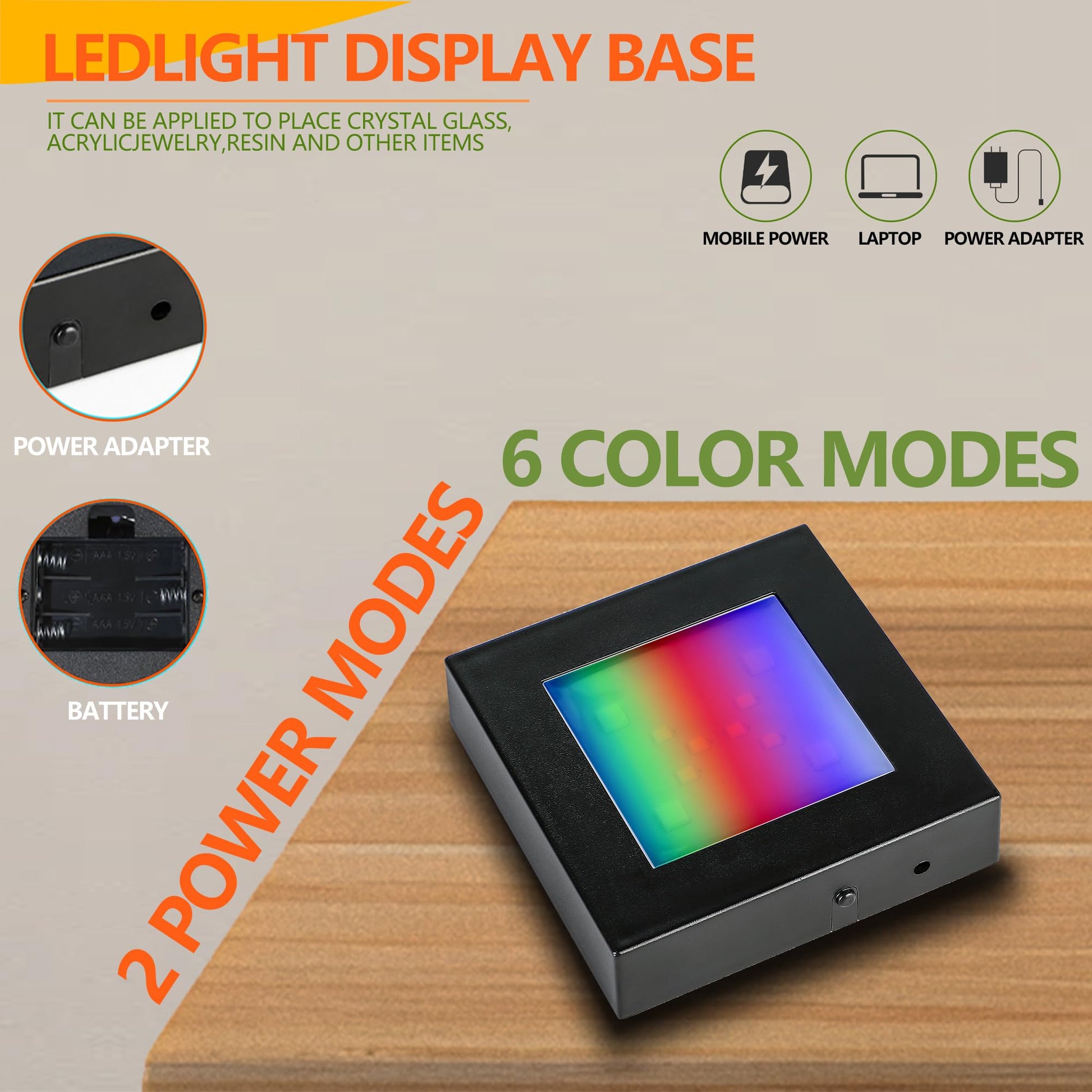ZEERSHEE LED Light Display Base for Crystal 3D Glass Art, 7 Lighting Mode Color Change Square Stand Base Plate Flat