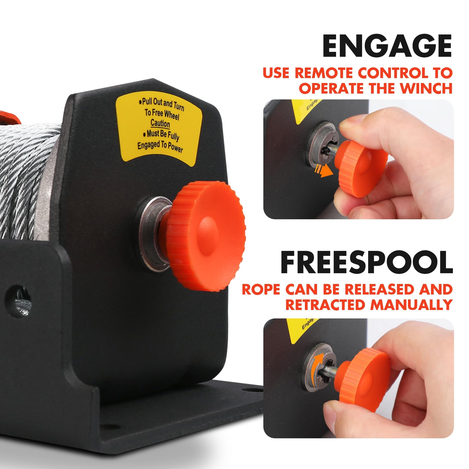 ZESUPER 2500 lb Electric Winch 50ft Steel Cable 12V DC UTV ATV Boat Trailer Winch with Handheld Remote Mounting Plate Waterproof Small Electric Winch ATV Winches Kits