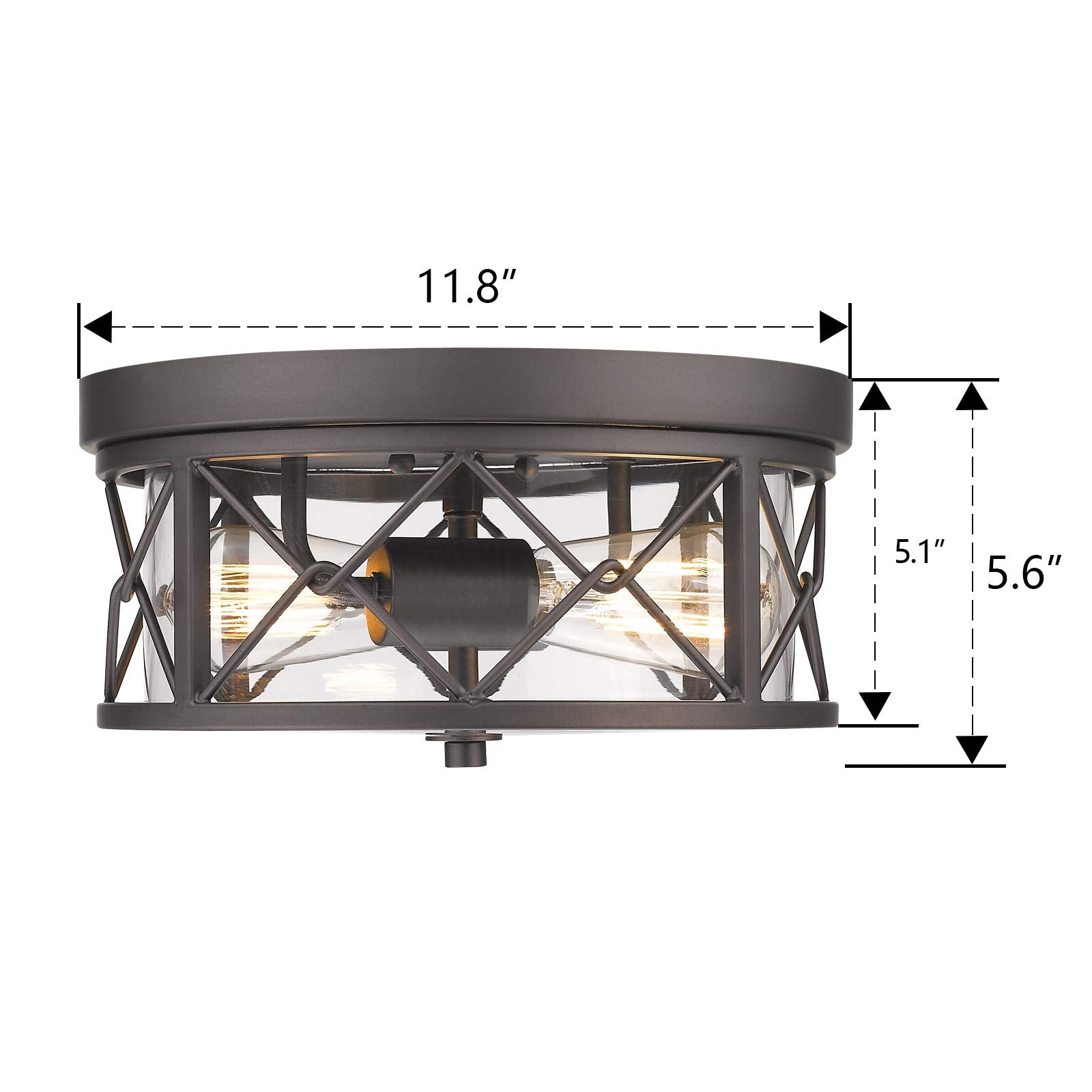 zeyu 2-Light Flush Mount Ceiling Light, 12 Inch Kitchen Light Fixtures Ceiling with Clear Glass Cover, Oil Rubbed Bronze Finish, ZY25-F ORB