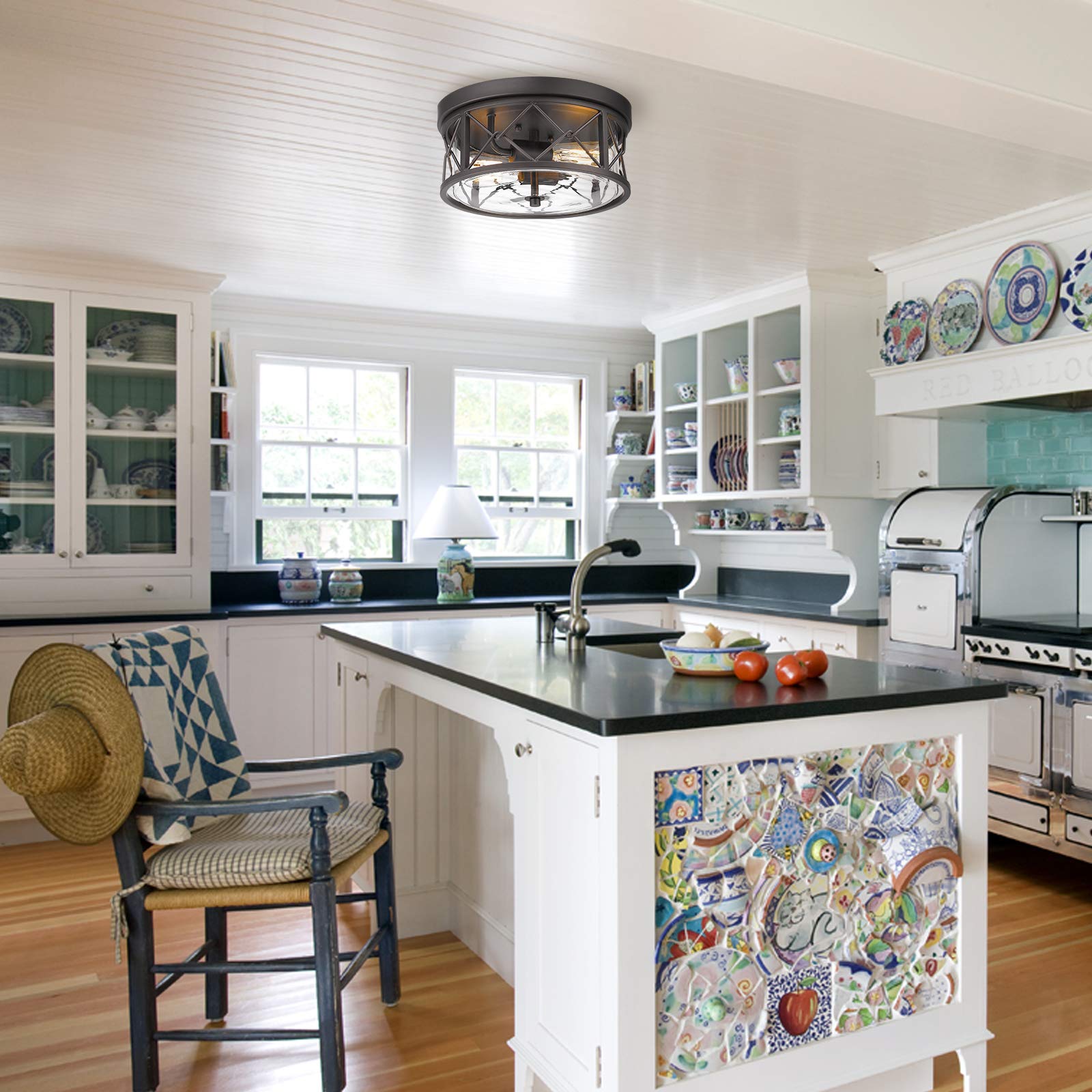 - 【INDUSTRIAL & FARMHOUSE】: Featuring a modern design, this close to ceiling light fixture is made of a metal cage frame with clear glass shade in oil rubbed bronze finish, create a chic and farmhouse look in your house.