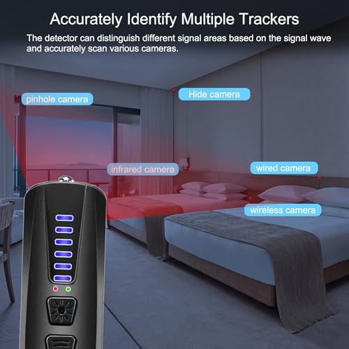 - Easy to Use:Simply turn on the camera detector to start scanning. Once a suspicious device is detected, the alarm will notify you with both sound and indicator lights. No professional skills needed?just press the button, scan, and feel at ease.