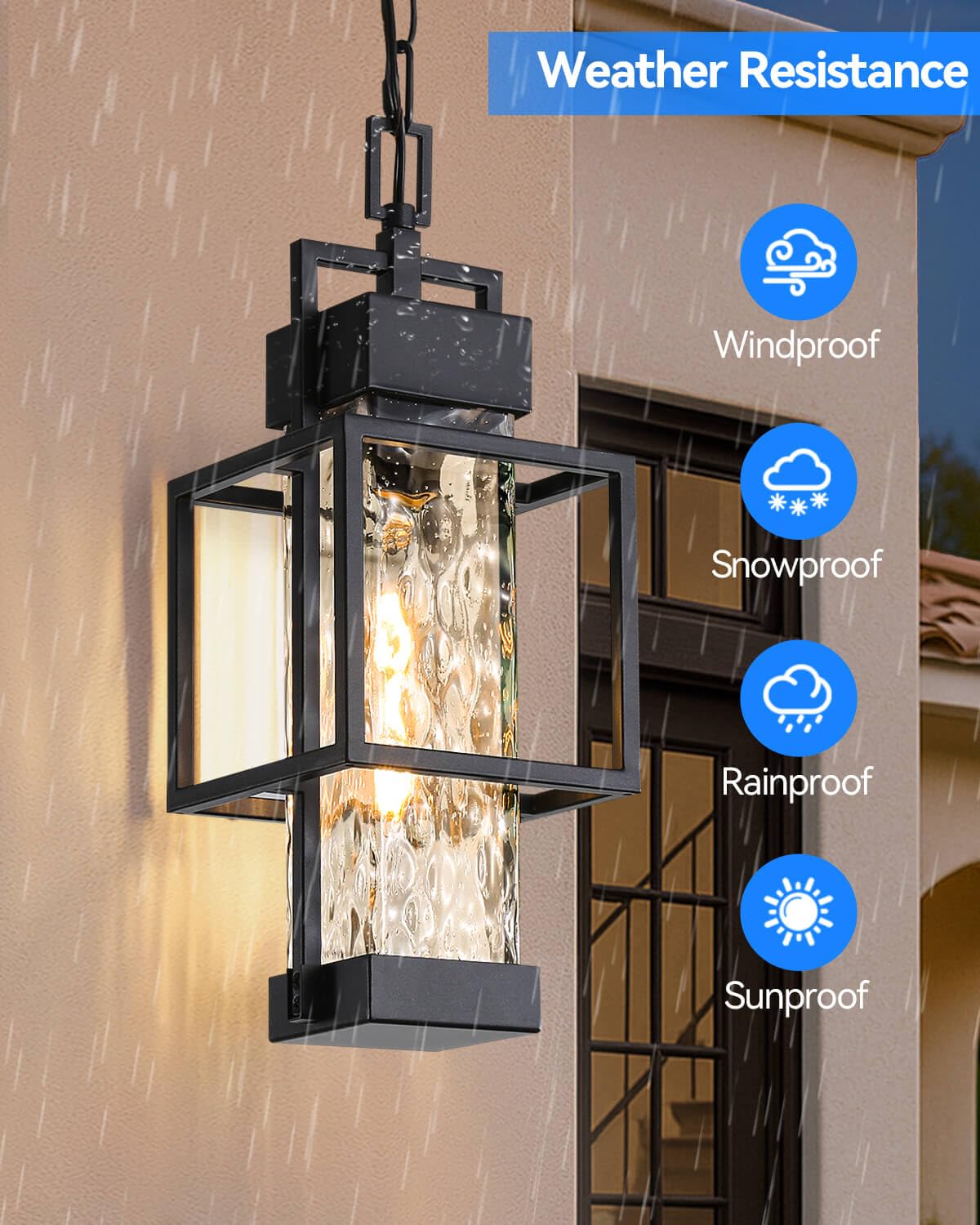 - Weatherproof & Rust-Resistant for Exterior Use - Crafted with high-quality metal and sealed water glass, this waterproof outdoor hanging light stands up to rain, snow, and harsh sunlight. Its corrosion-resistant black finish ensures long-lasting durability in any climate, even near the coast.