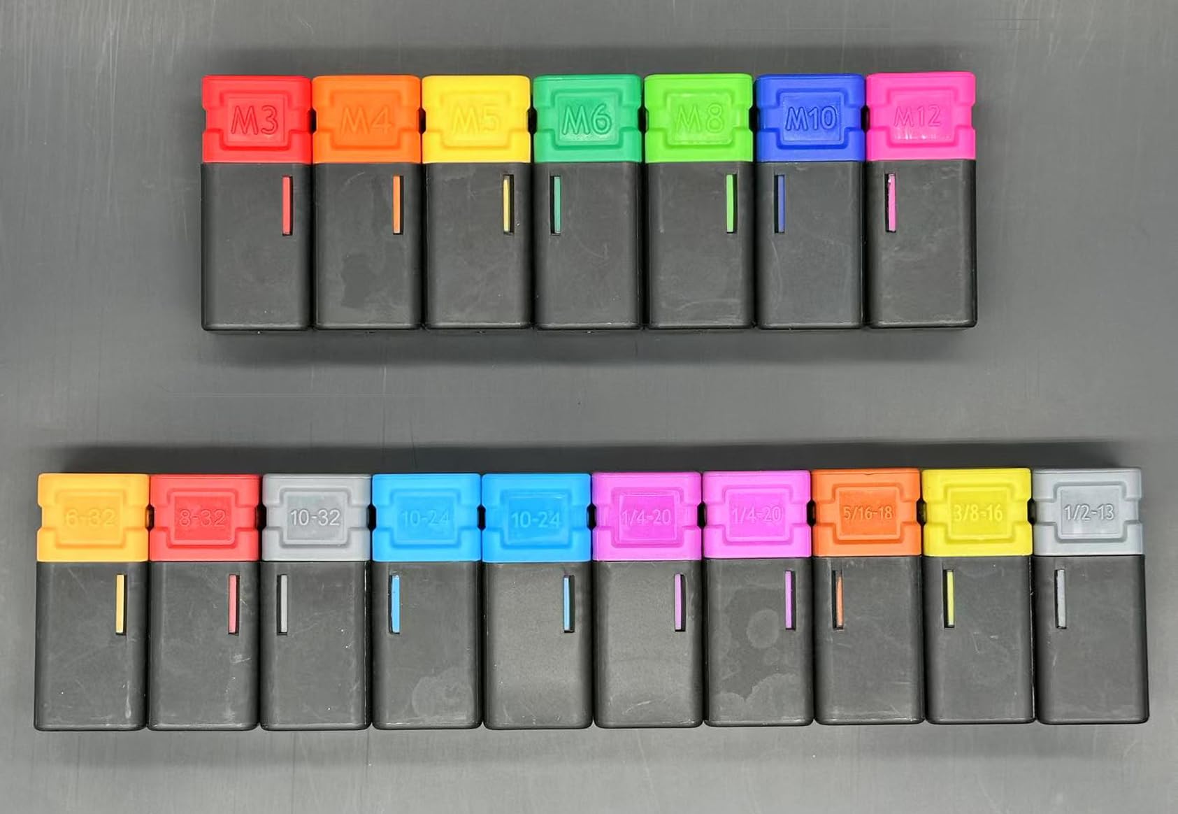 15 × Mandrels(M3)×1 (M4)×1 (M5)×1 (M6)×1 (M8)×1 (M10)×1 (M12)×1 (6-32)×1(8-32)×1 (10-32)×1(10-24)×2 (1/4-20)×2 (5/16-18)×1(3/8-16)×1 (1/2-13)×1