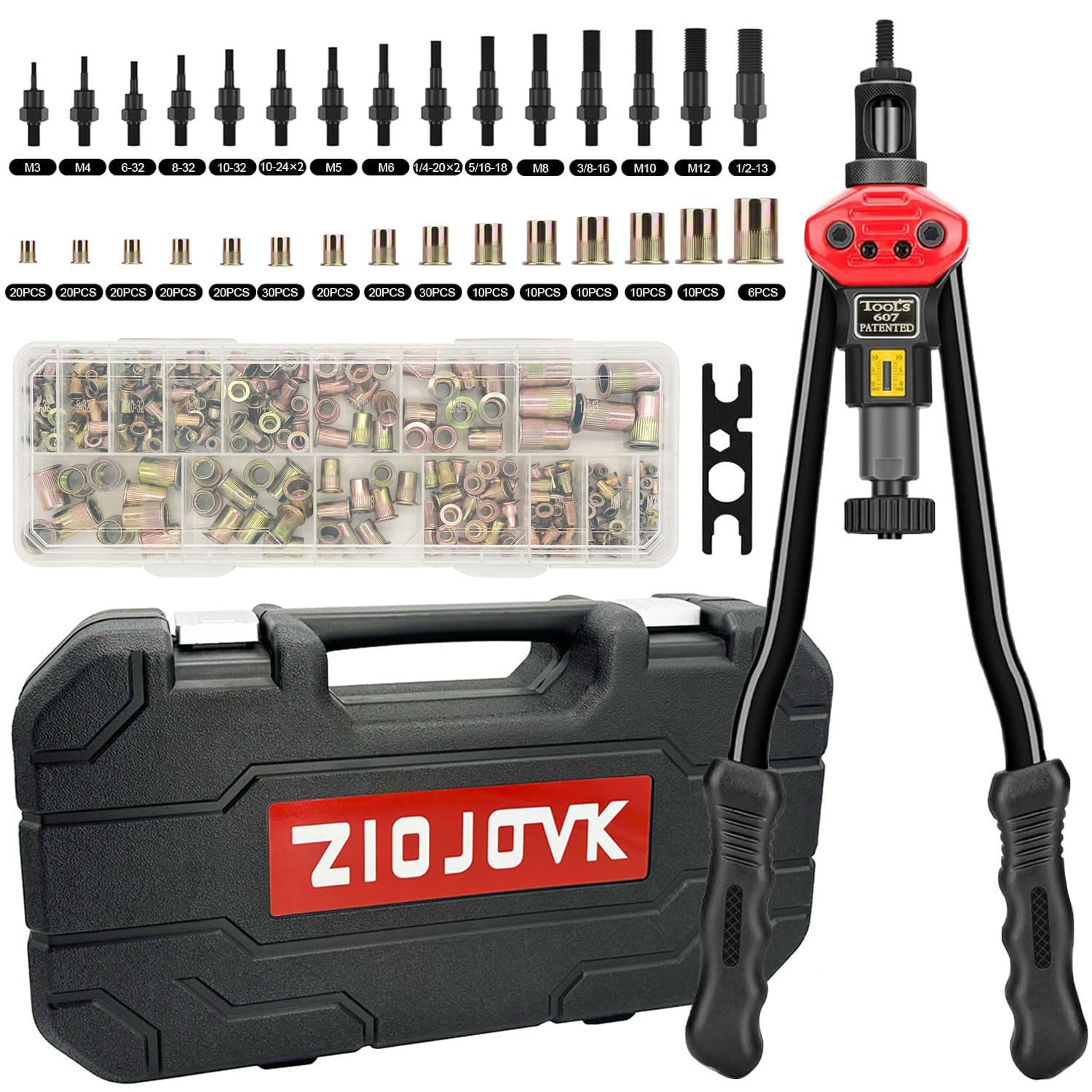 ZIOJOVK 16-Inch Rivet Nut Tool Kit, with17 Metric and SAE Mandrels, 256Pcs Assorted Rivet Nuts, and Rugged Carrying Case