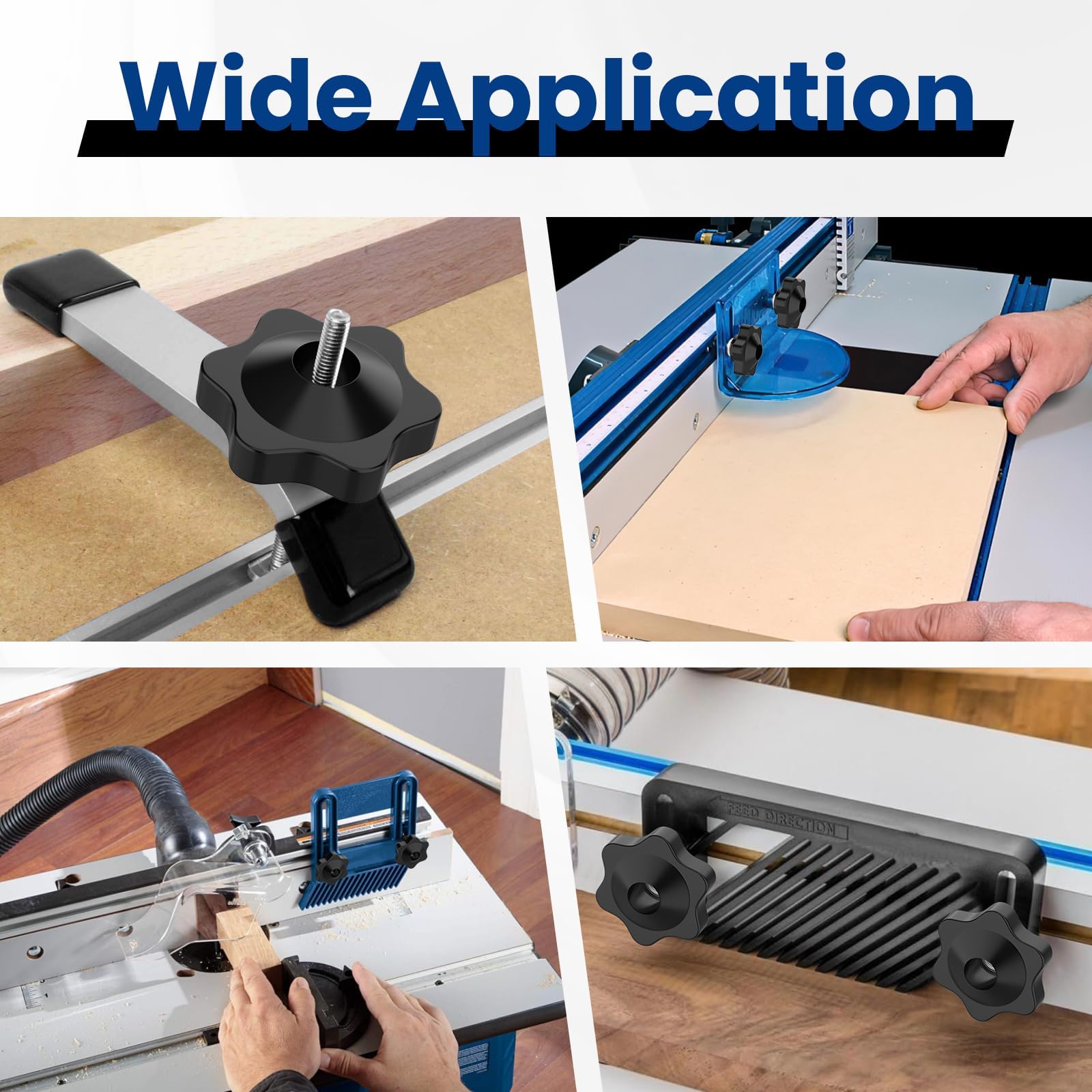 ZIUZI 10 Sets of 1/4"-20 T Track Knob Kit, Star Knobs Kit Include 1/4-20 Threaded Bolts with Washers and Star Knobs, T Track Accessories for Woodworking Jigs and Fixtures