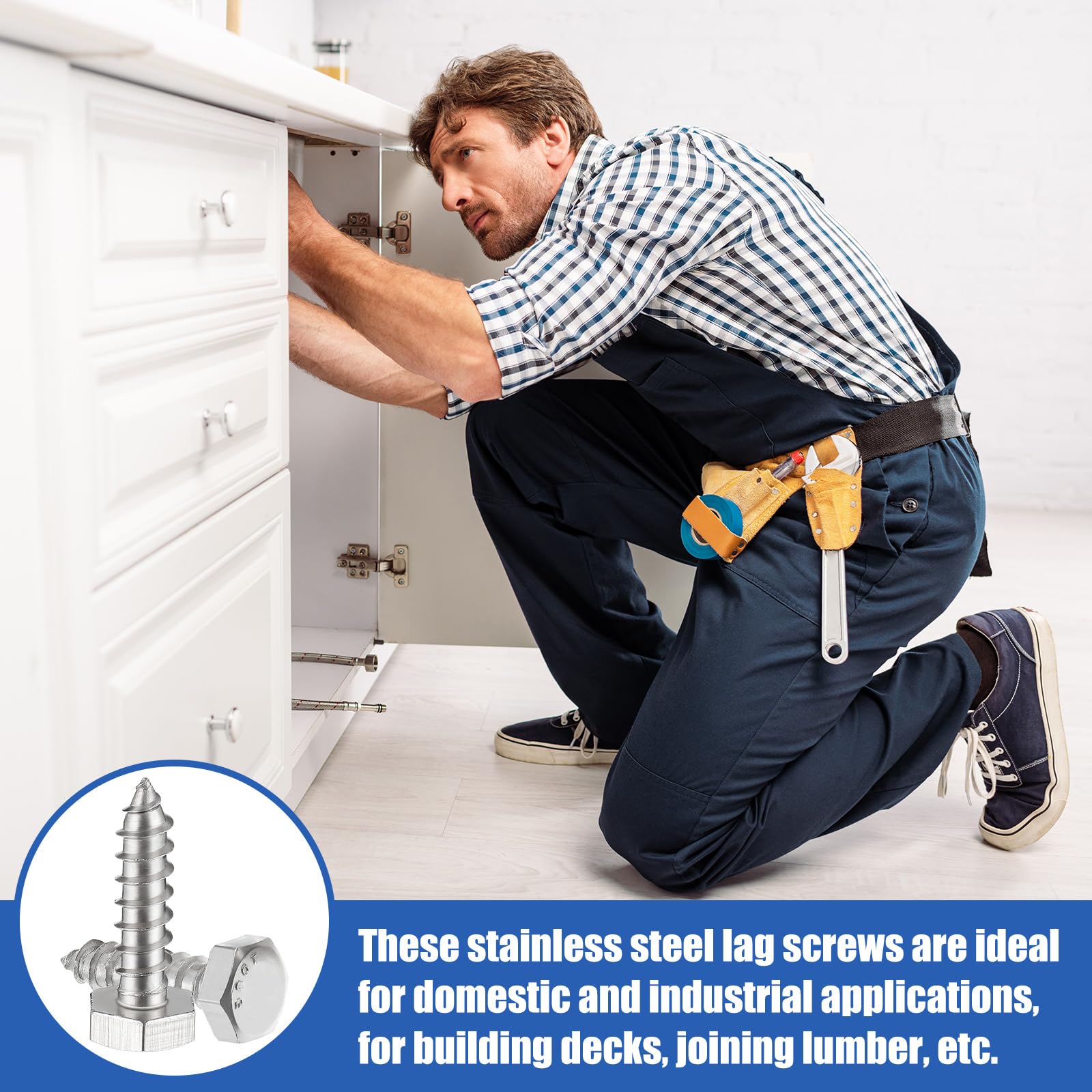 - Multipurpose Utility: these durable, stainless steel hex head lag screws are excellent for securing wood in both domestic and industrial applications; From building decks to joining lumber, their use is extensive; Even better, when combined with washers, they distribute head pressure evenly and prevent the issue of pulling