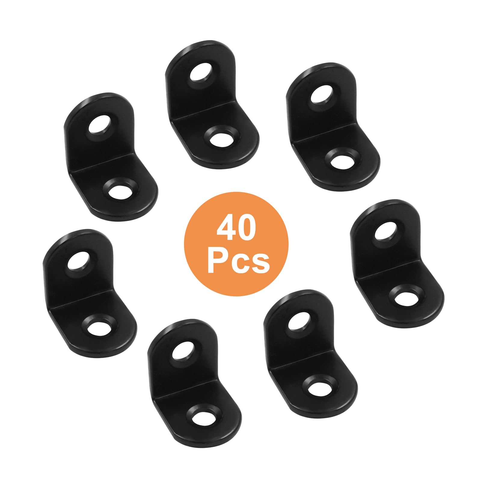 Zorveiio 40 Pcs L Bracket Corner Brace 0.63" x 0.63" Metal Corner Bracket 90 Degree Right Angle for Shelves Chair Tables Cabinet Wood Furniture whih 80 Pcs Screws, Black