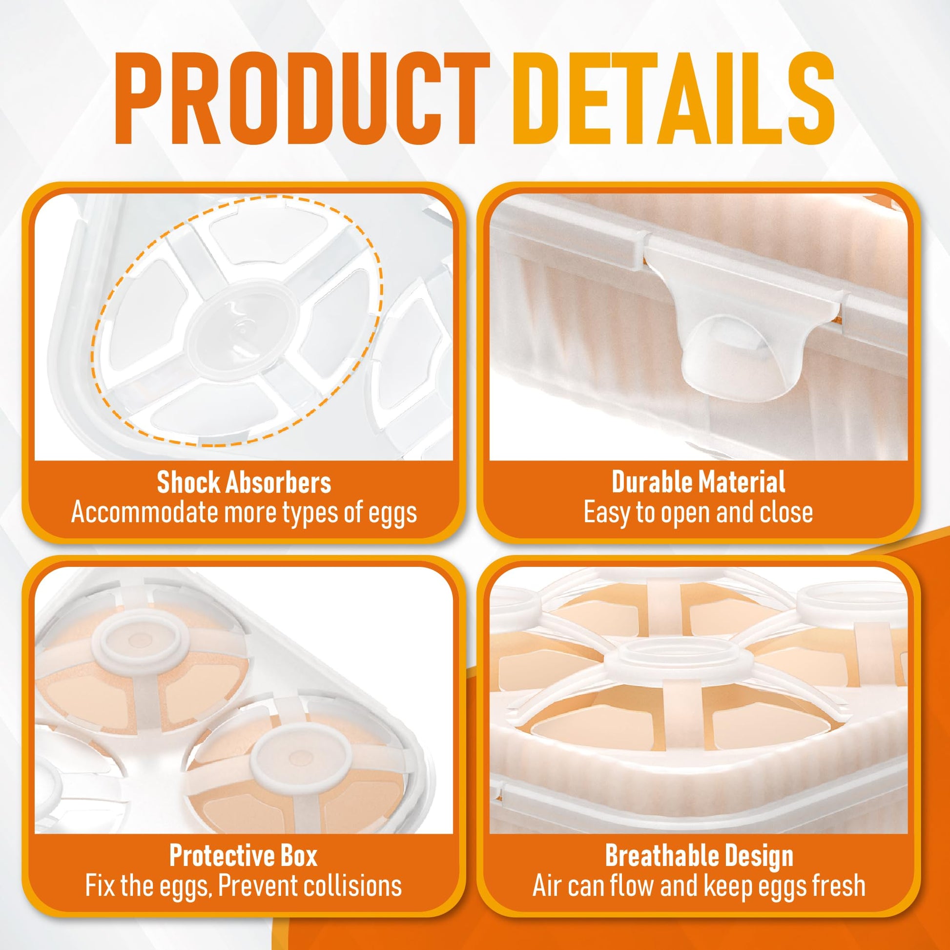 - Elaborate Design - Groove and breathable design. Each egg is placed separately to prevent shaking and effectively prevent the egg from collision and cracking. The unsealed design is designed to help eggs breathe.
