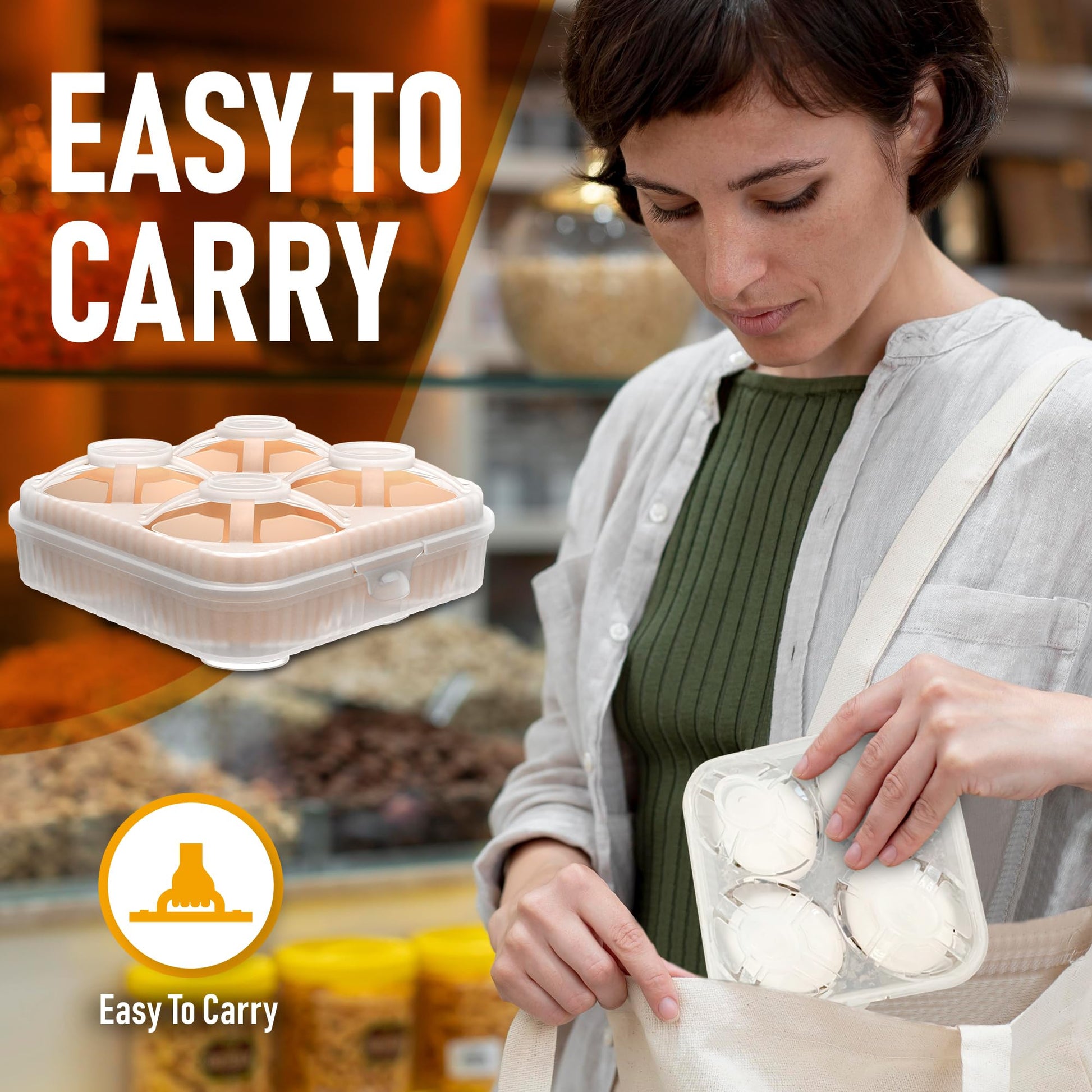- Portable & Space Saving - The egg holder for camping approximately 5 x 5 inches / 12.7 x 12.7 cm in length and width, which is very portable. You can stack the holder one by one due to its overall outer flat shap. Neat, beautiful and save a lot of space.